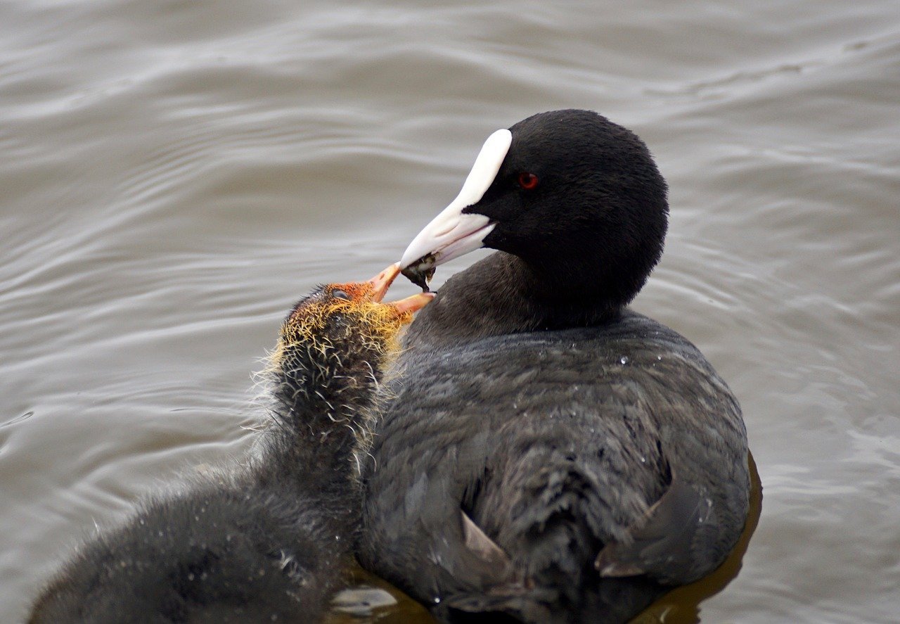 Утка лысуха нырок