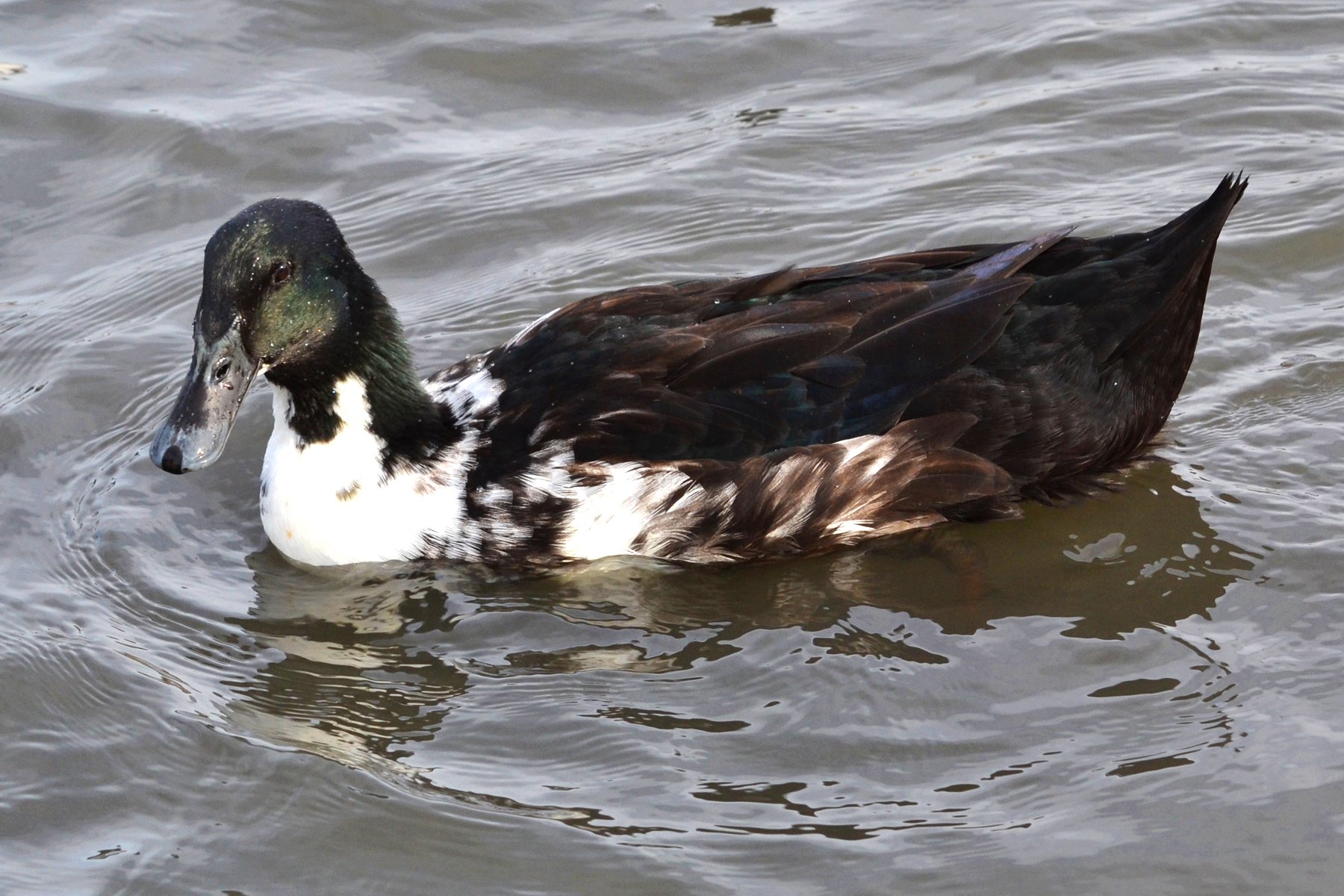 Чёрная утка с белой грудкой