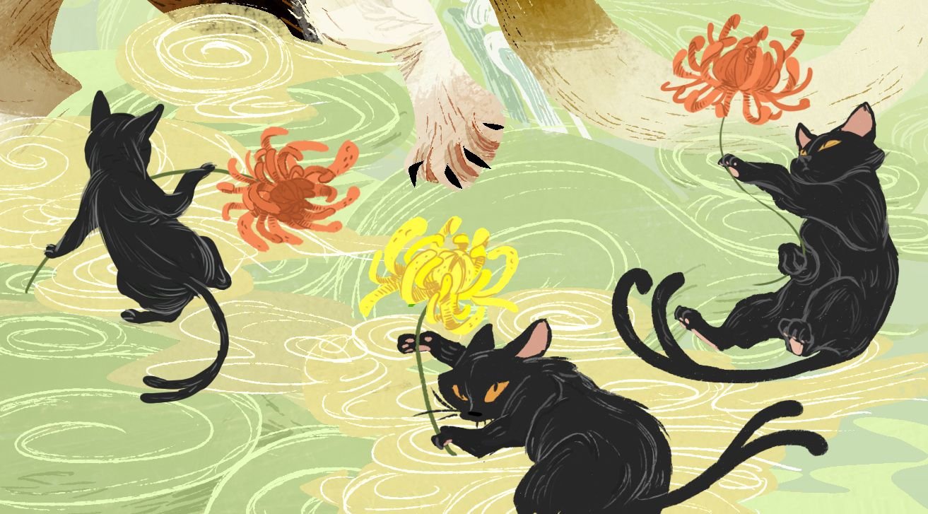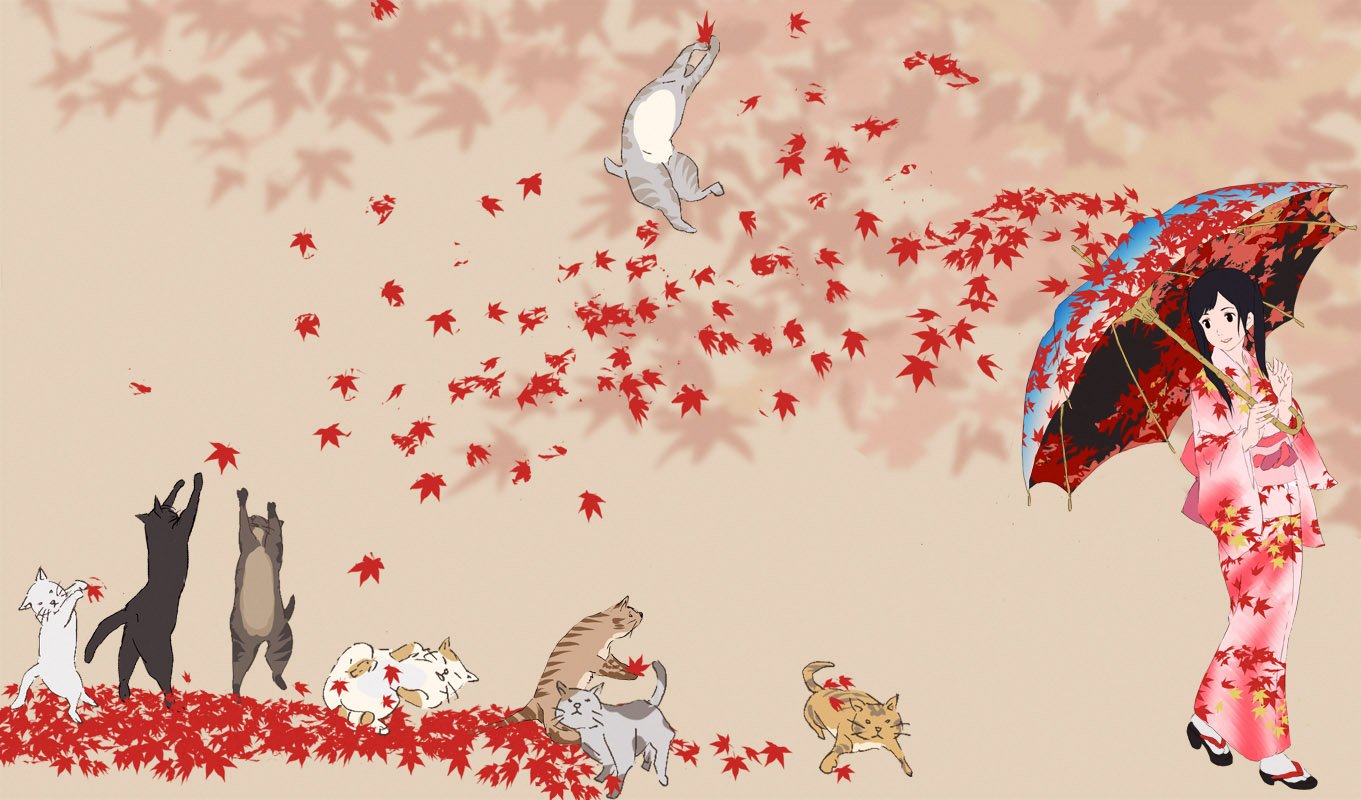 Японский фон коты