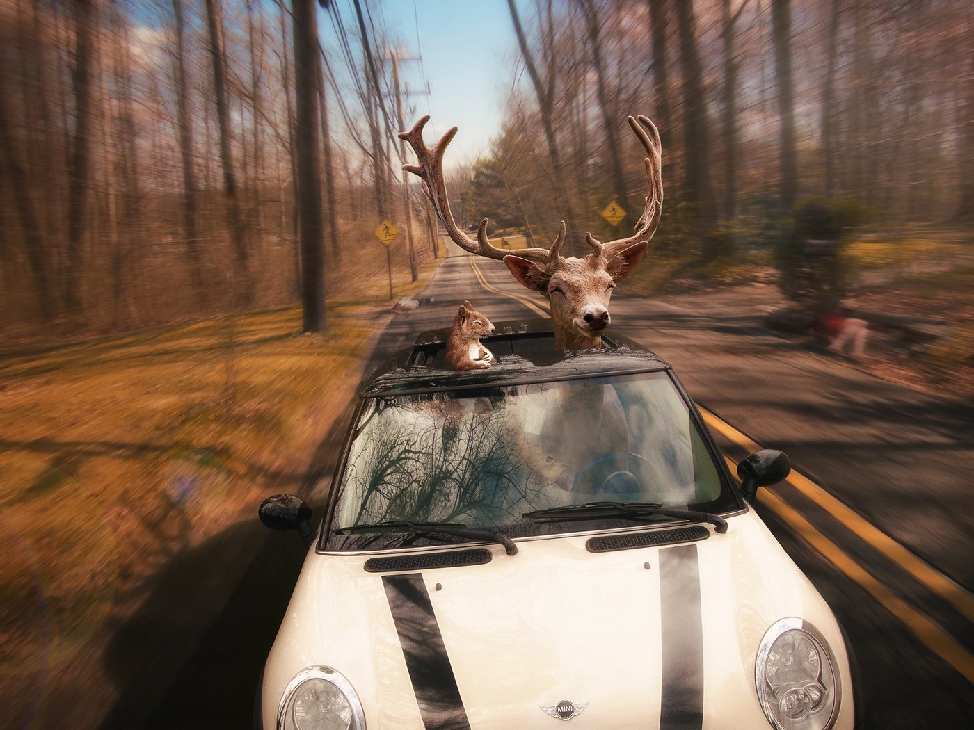 Олень на машине