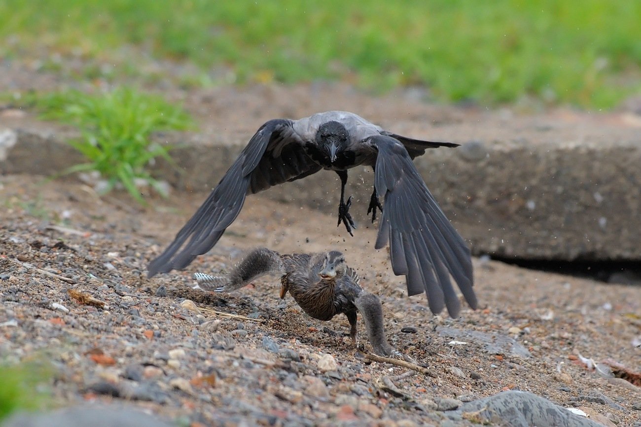 Ворон охотится