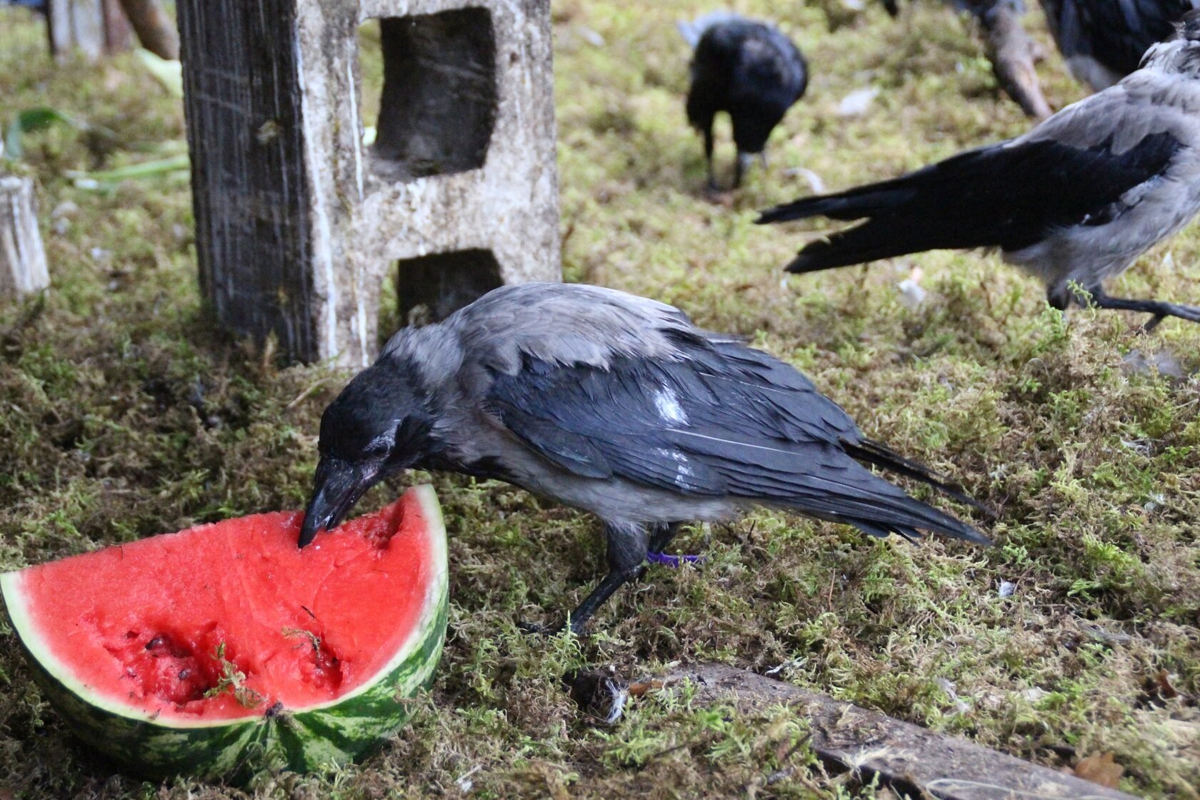 Серая ворона с едой
