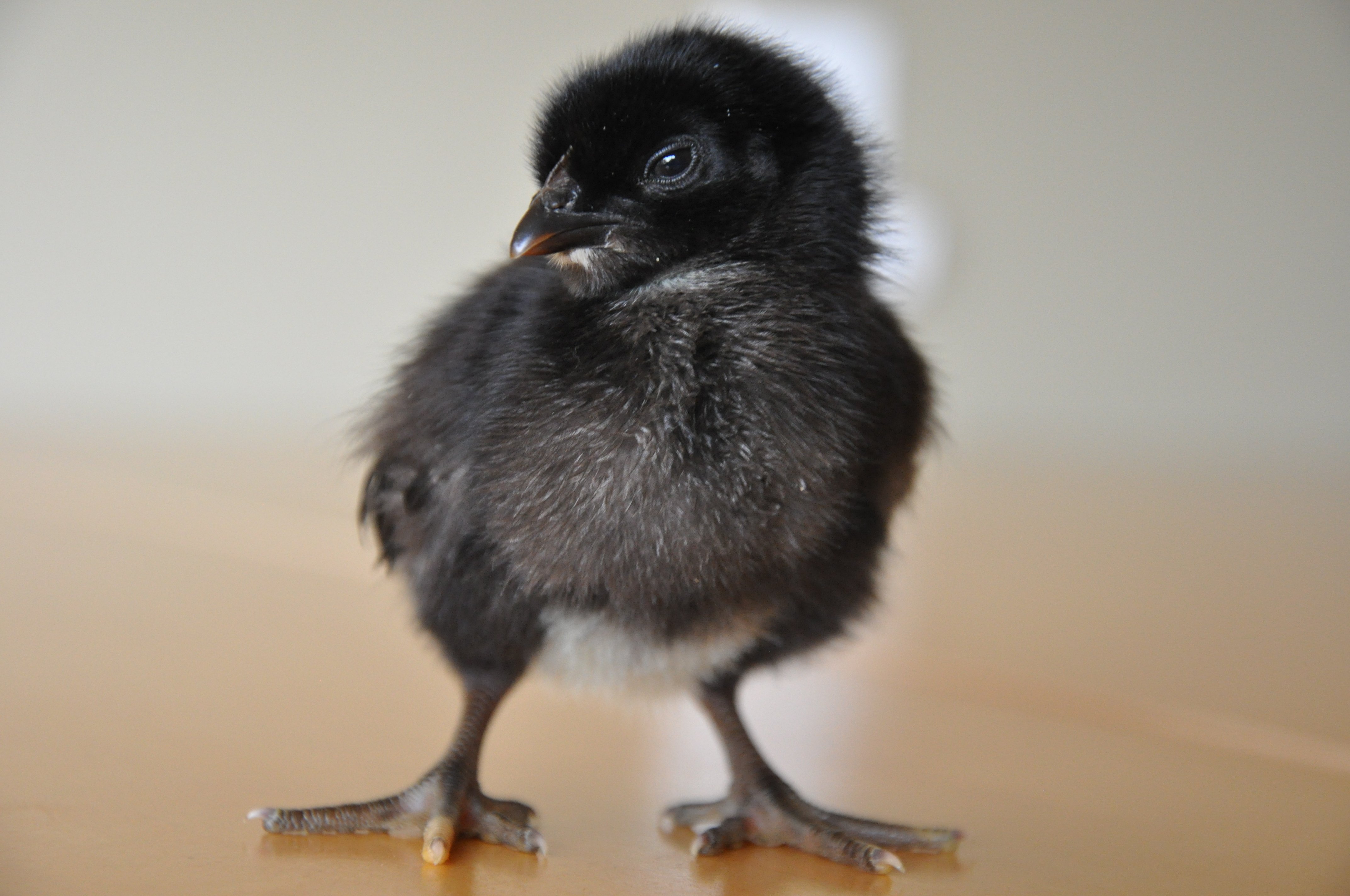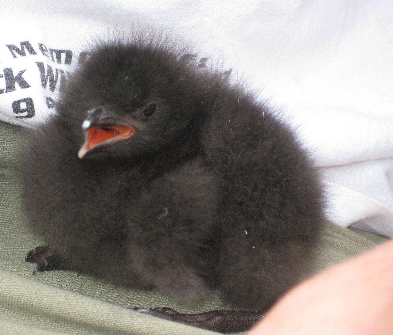 Черный птенец с большими лапами