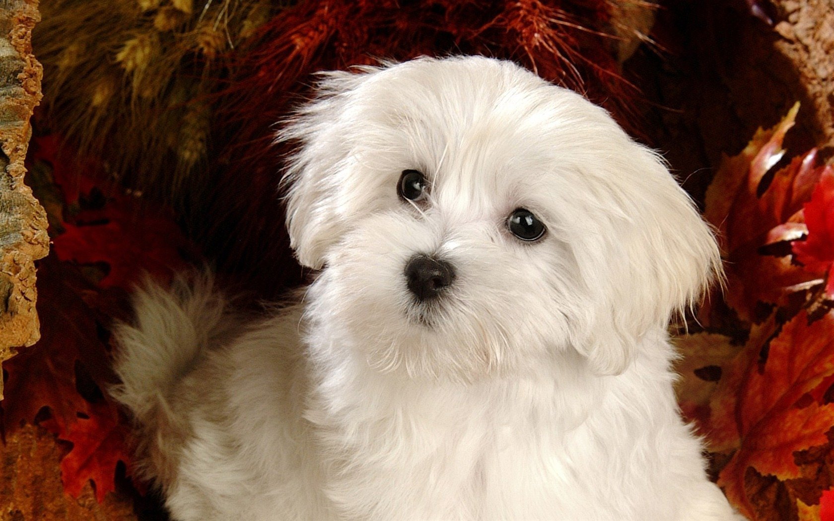 Собака болонка белая пушистая
