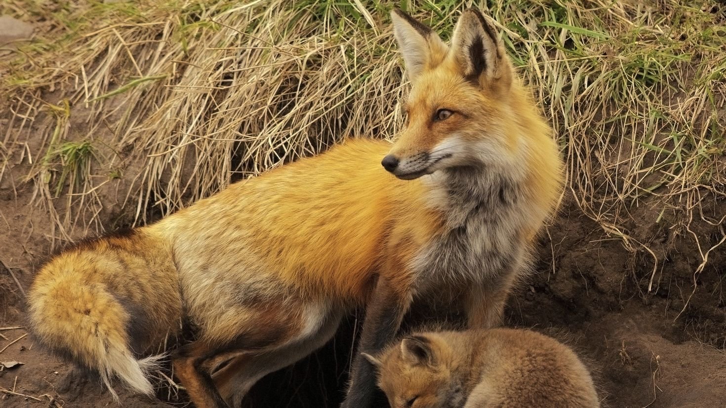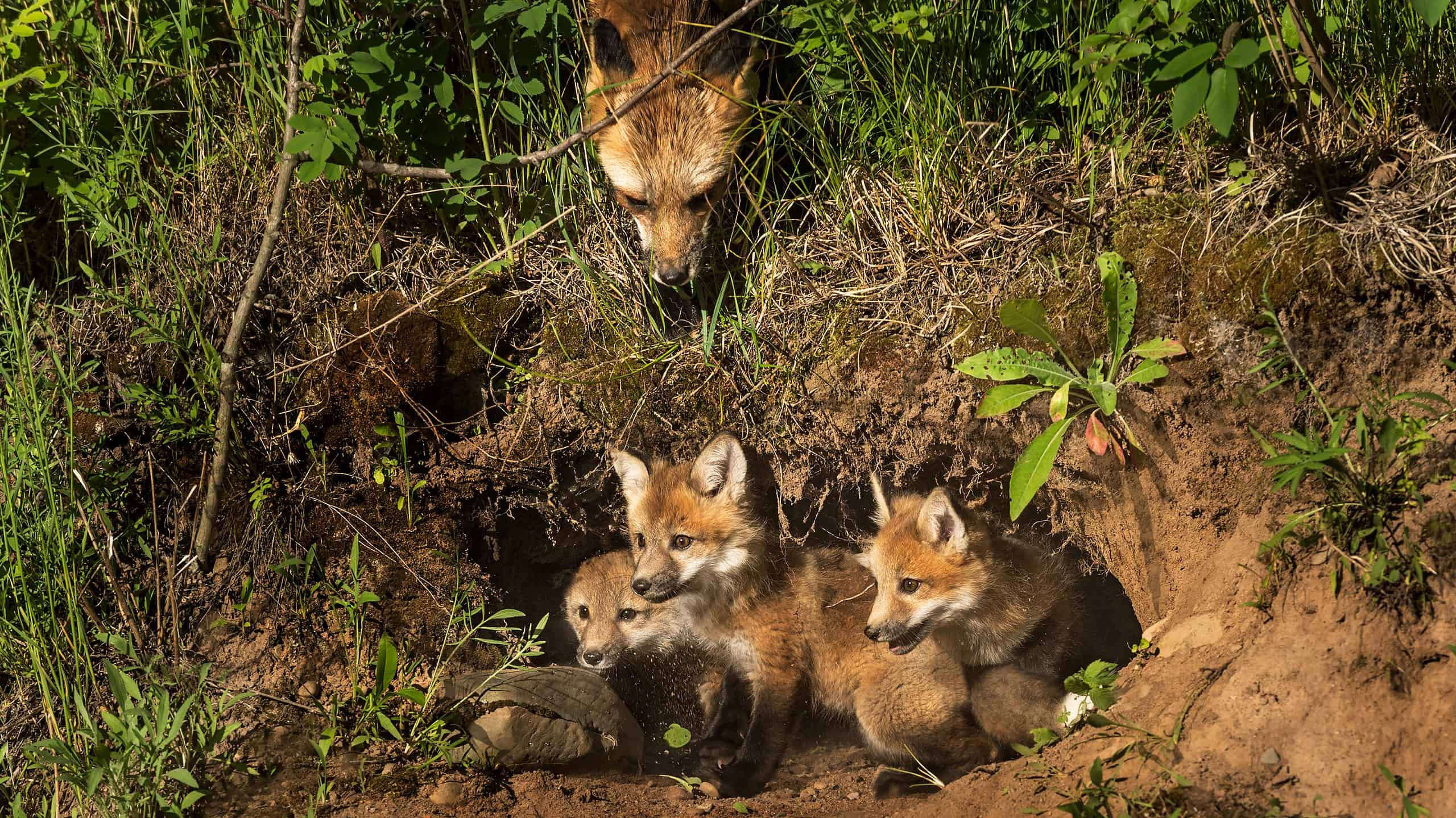 Лиса с лисятами в норе