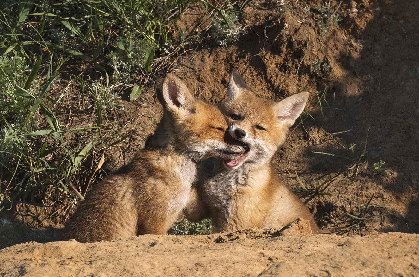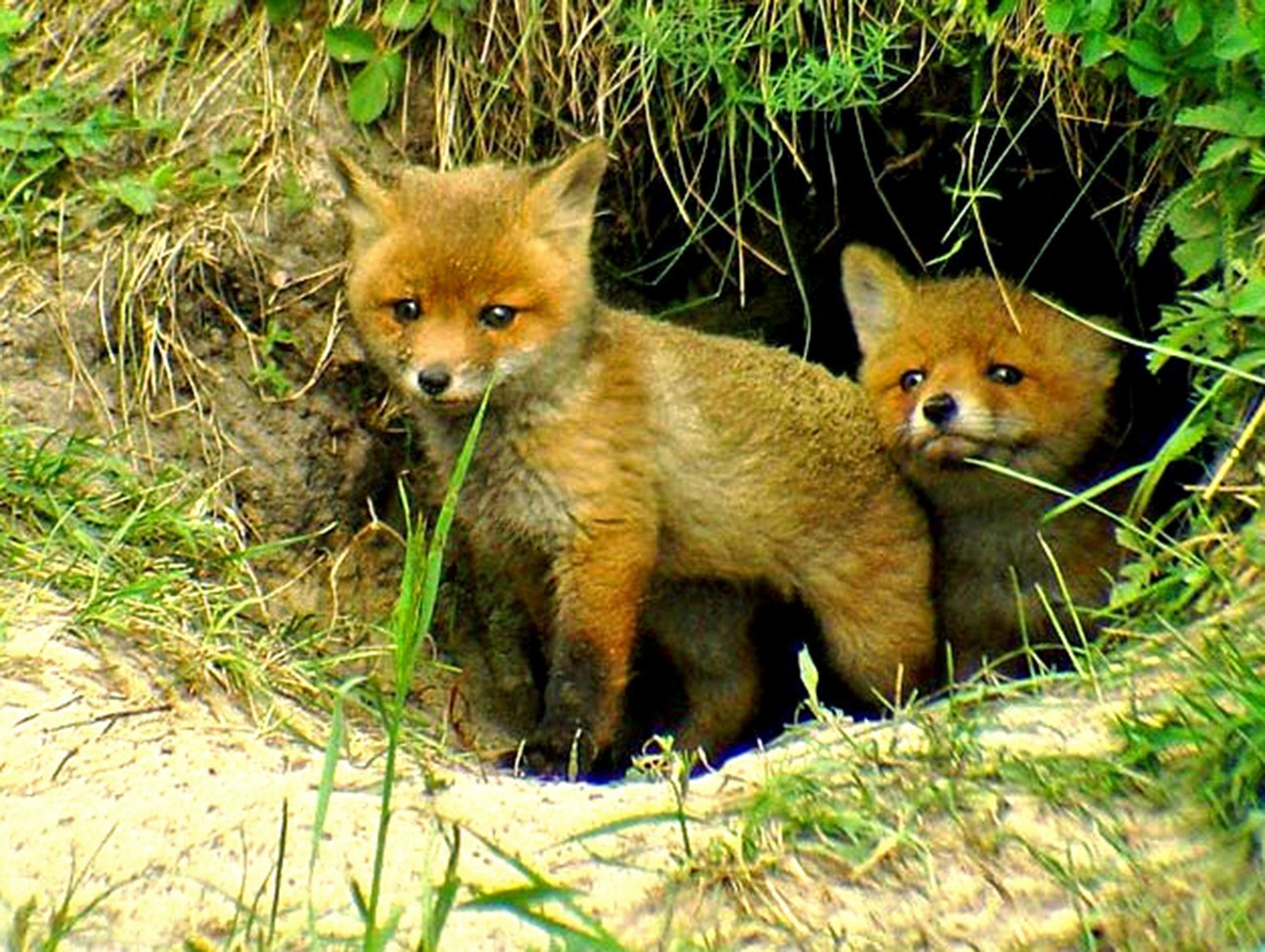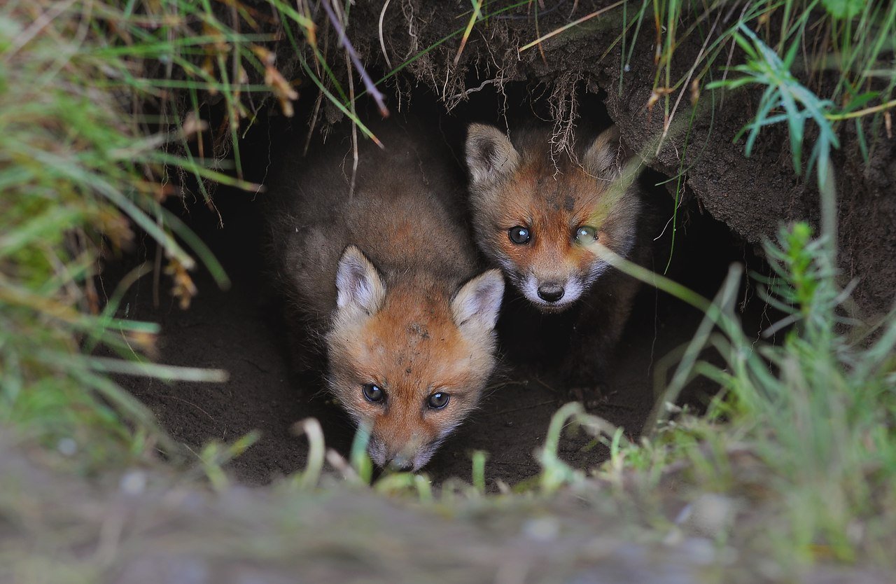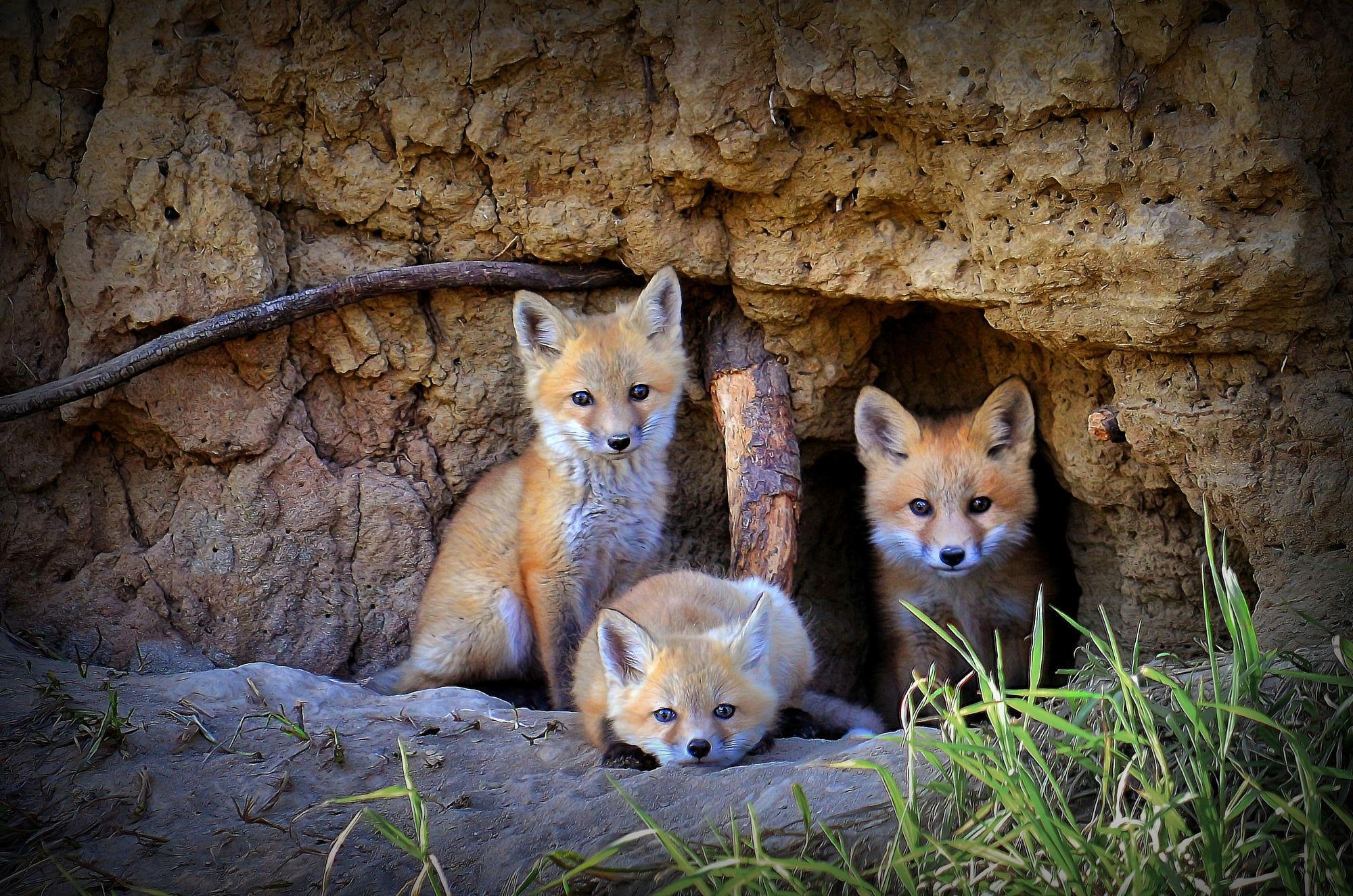 Маленькие лисята в норе