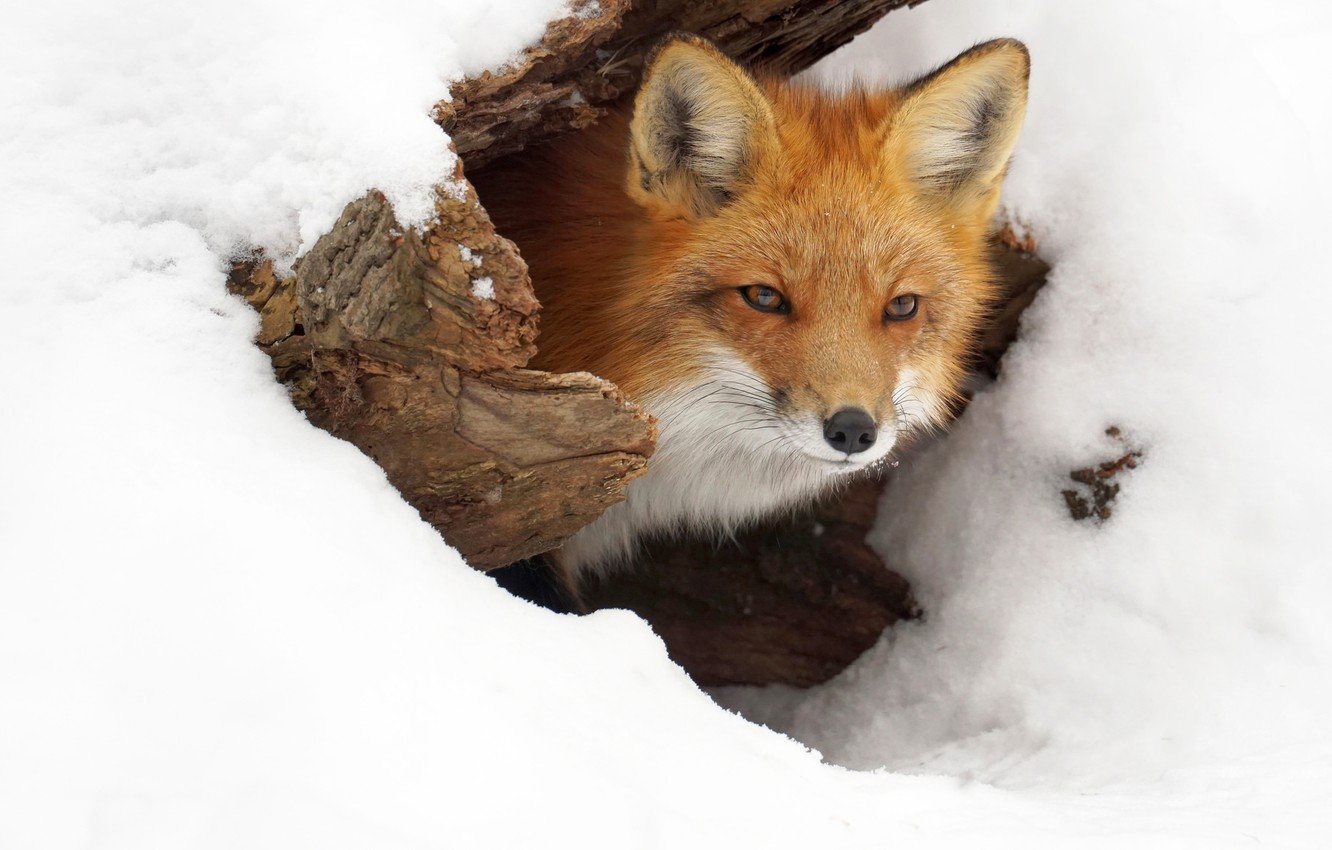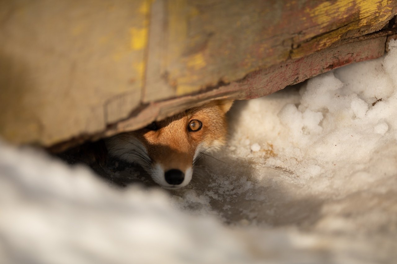 Лиса в норе зимой