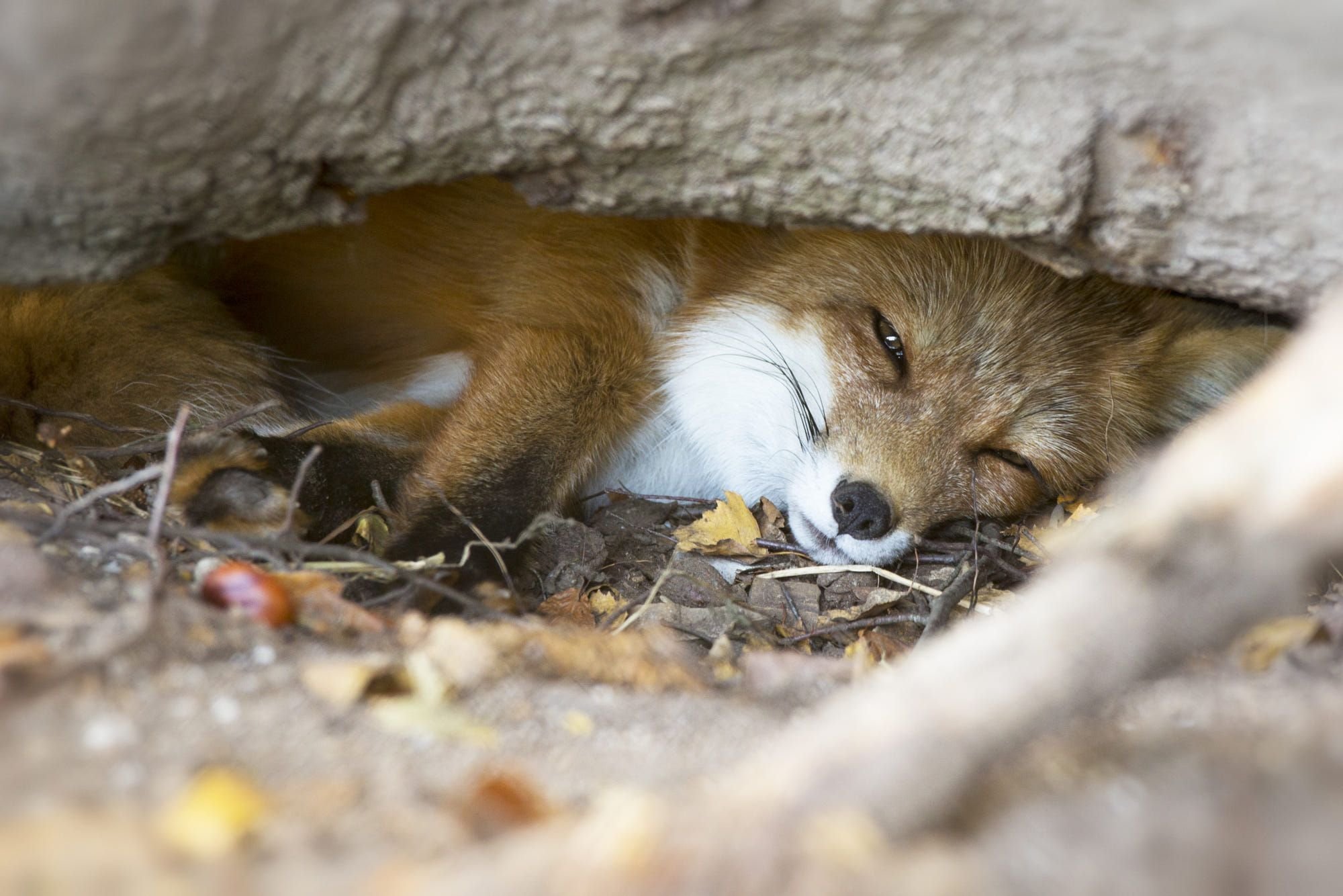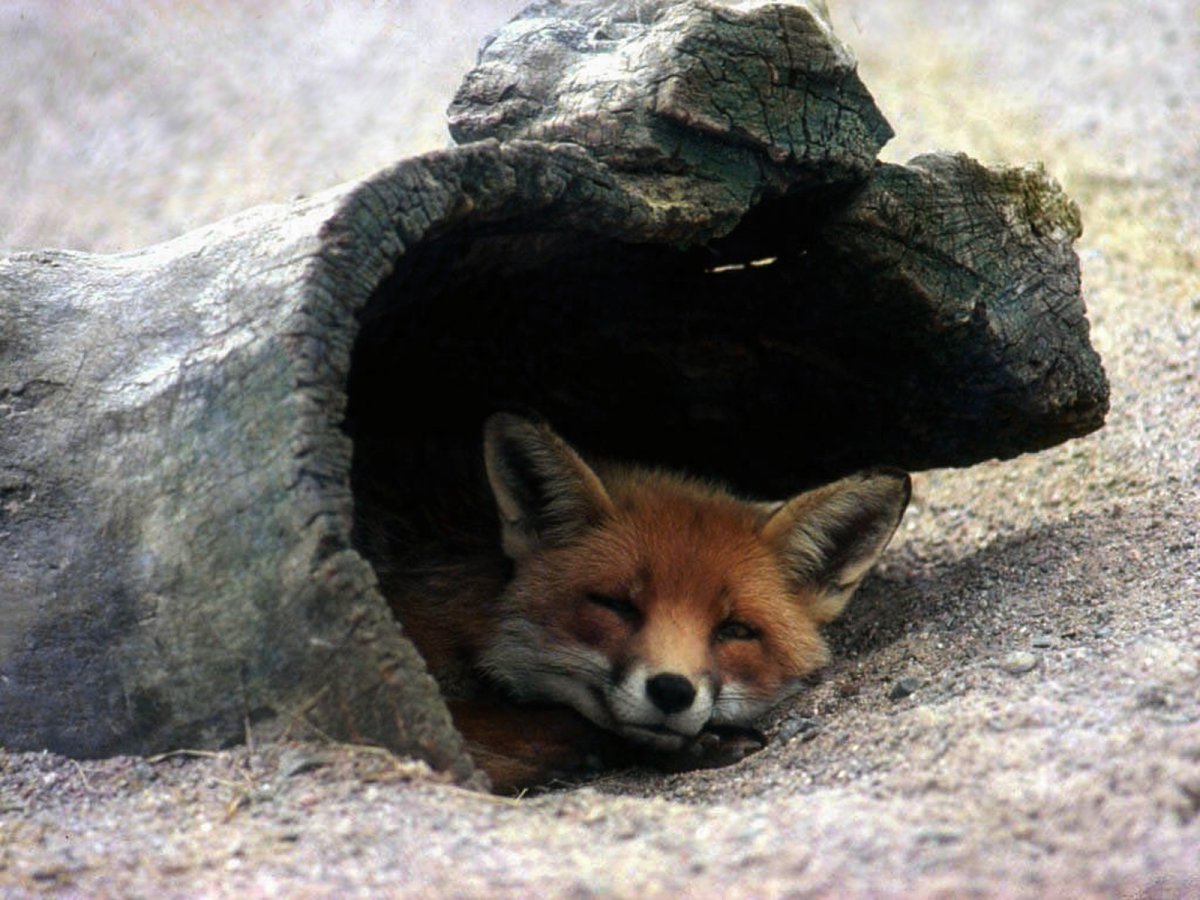Лиса спит в норе