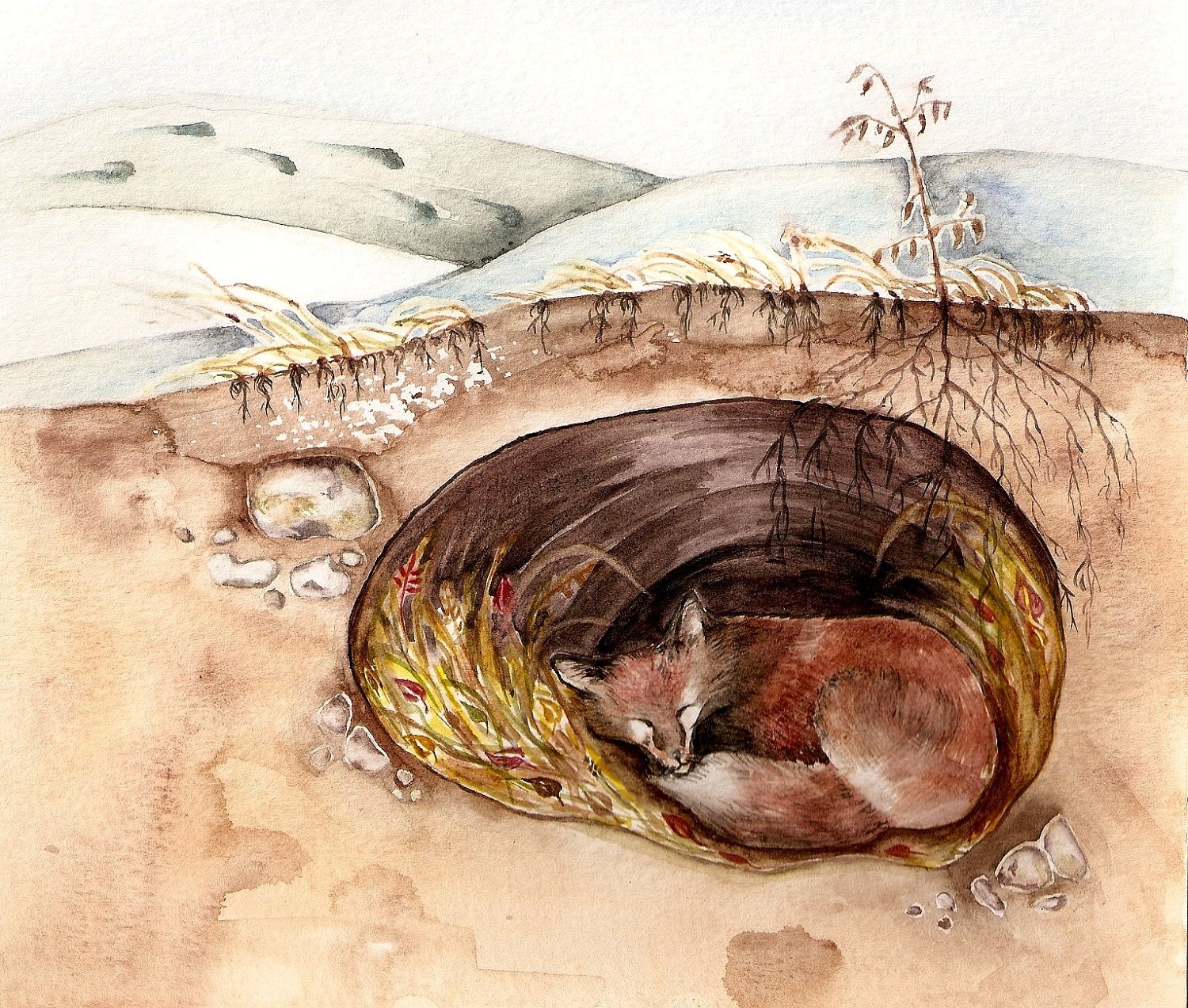 Лиса в норе рисунок