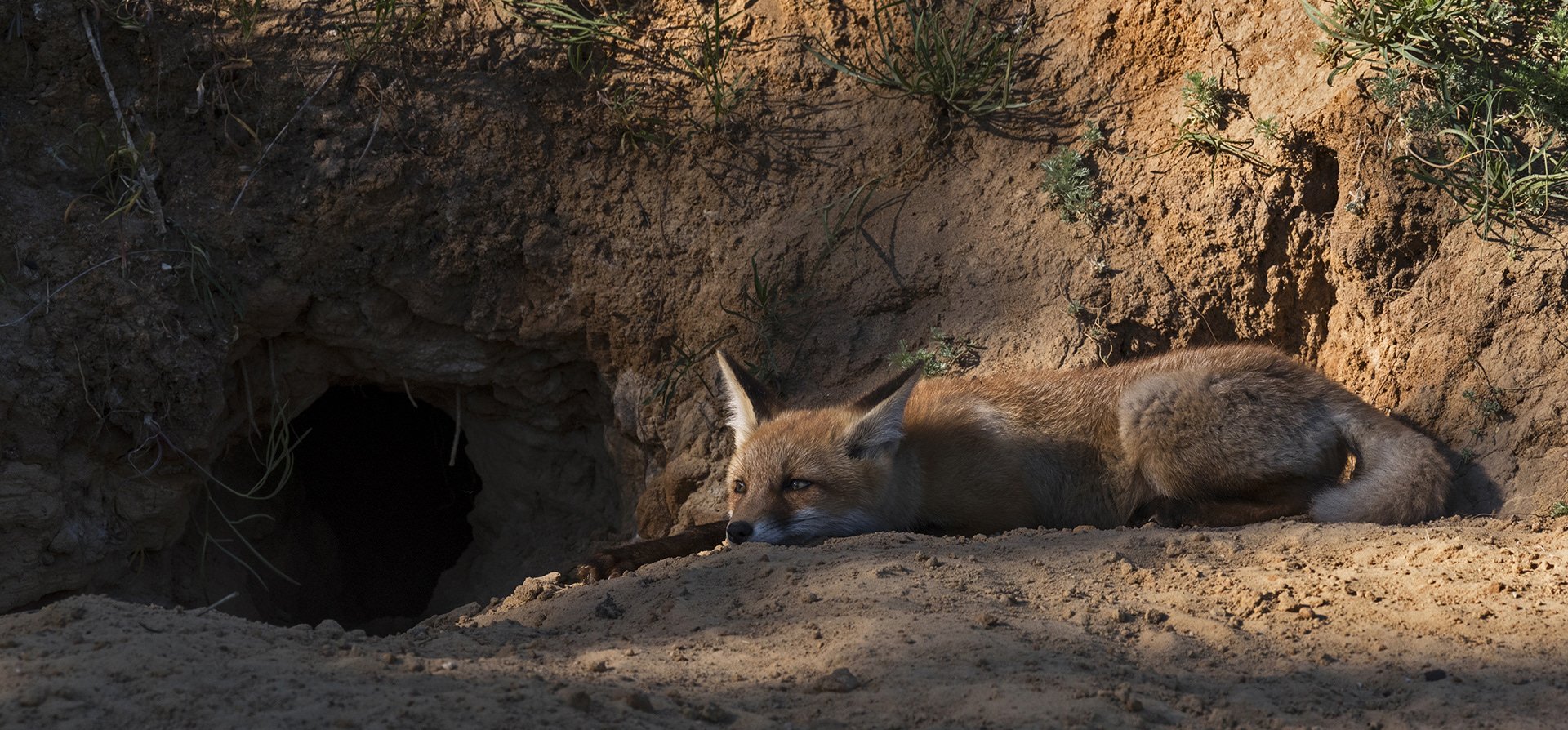 Лисичка спит в норке