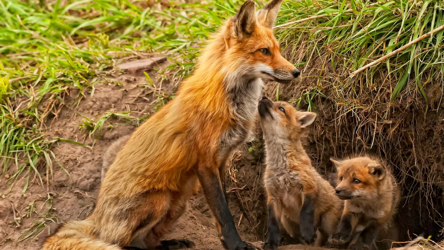 Лисья семья в норе