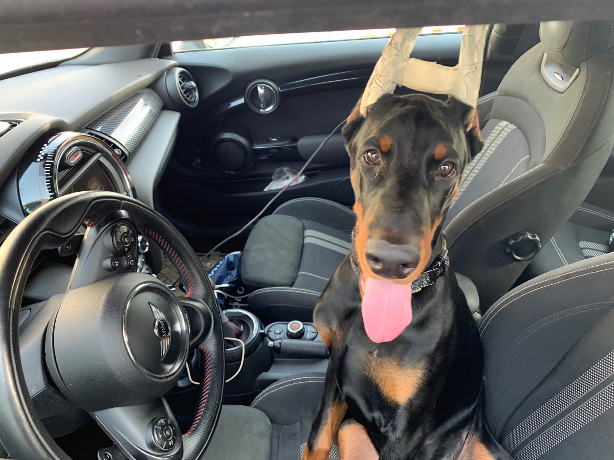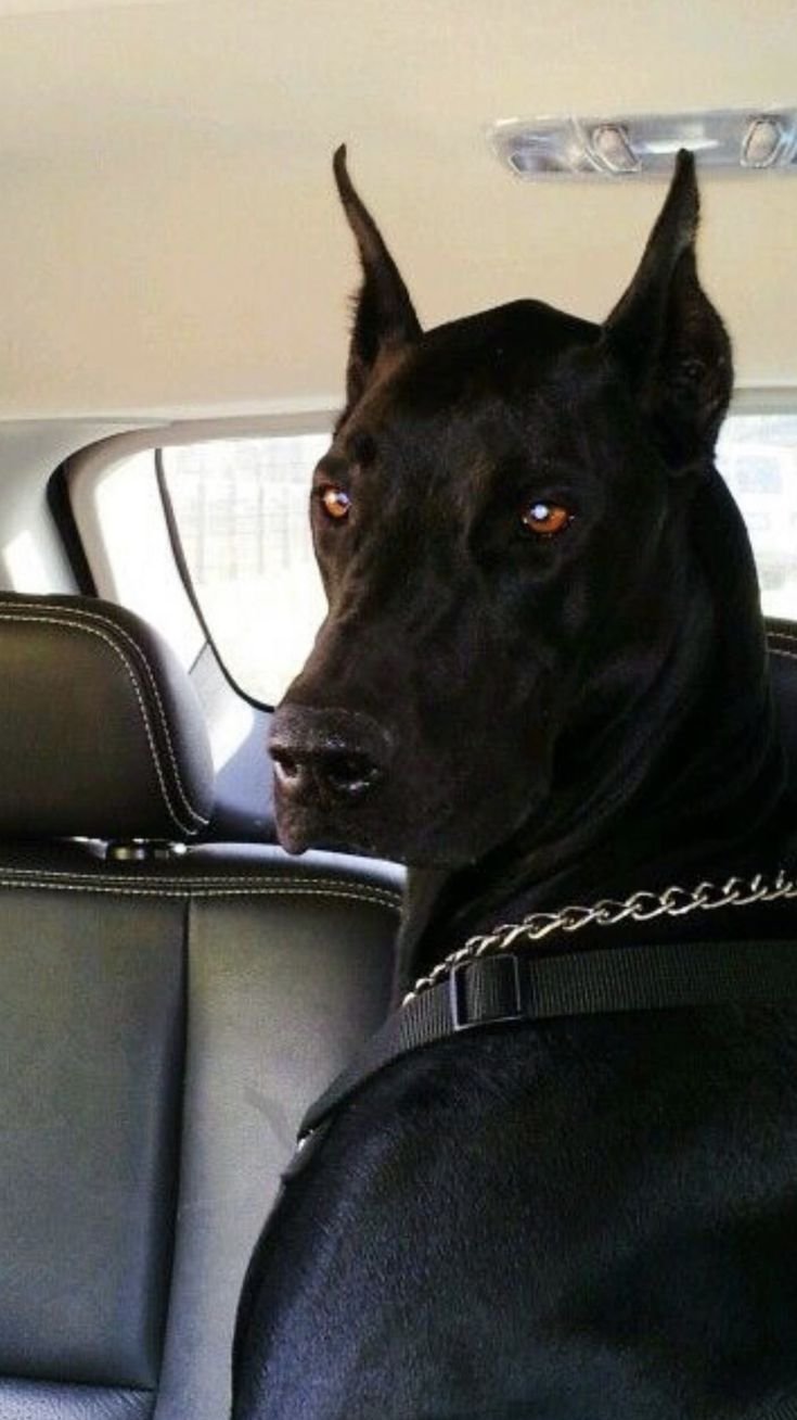 Доберман на заднем сидении