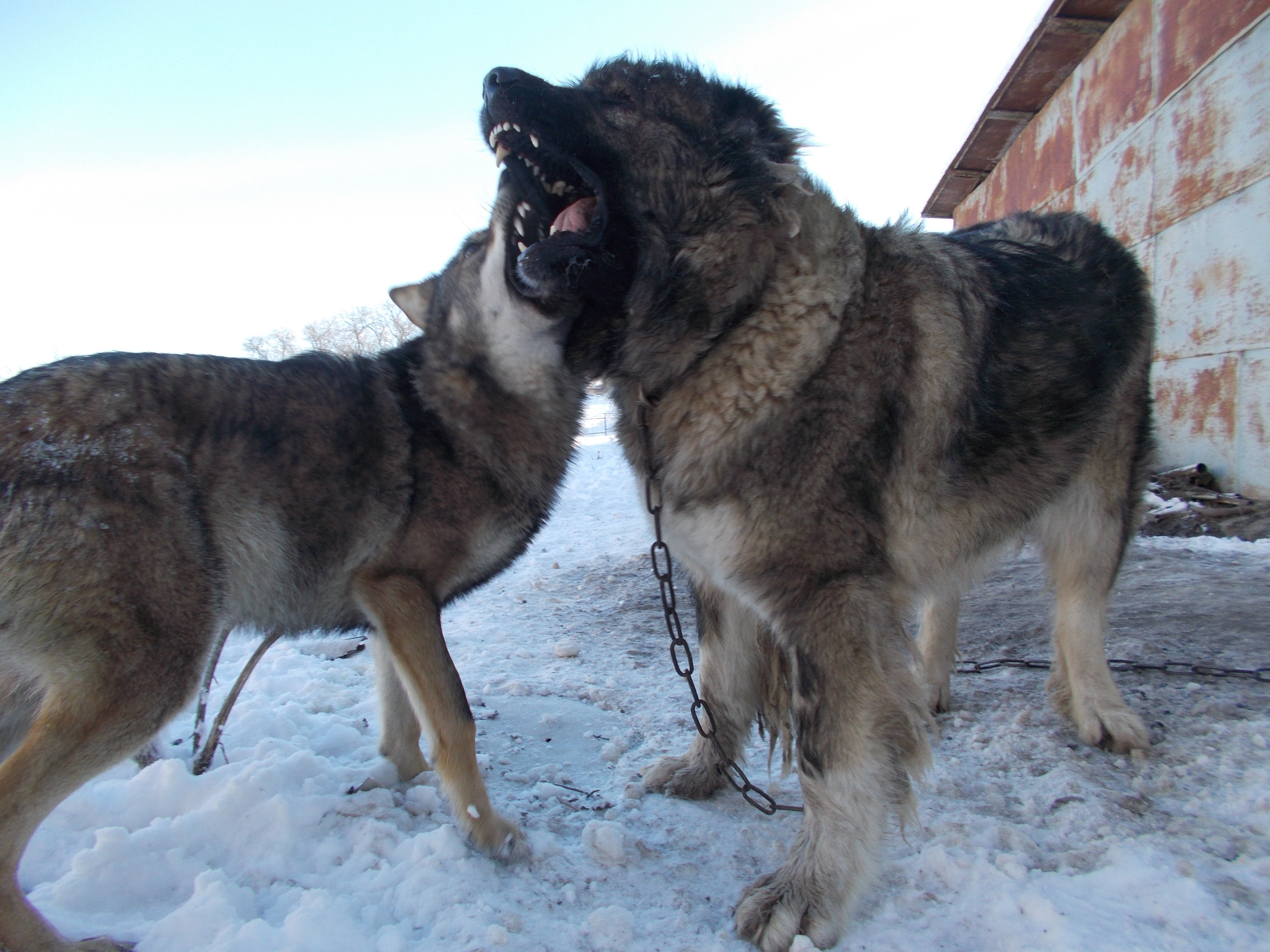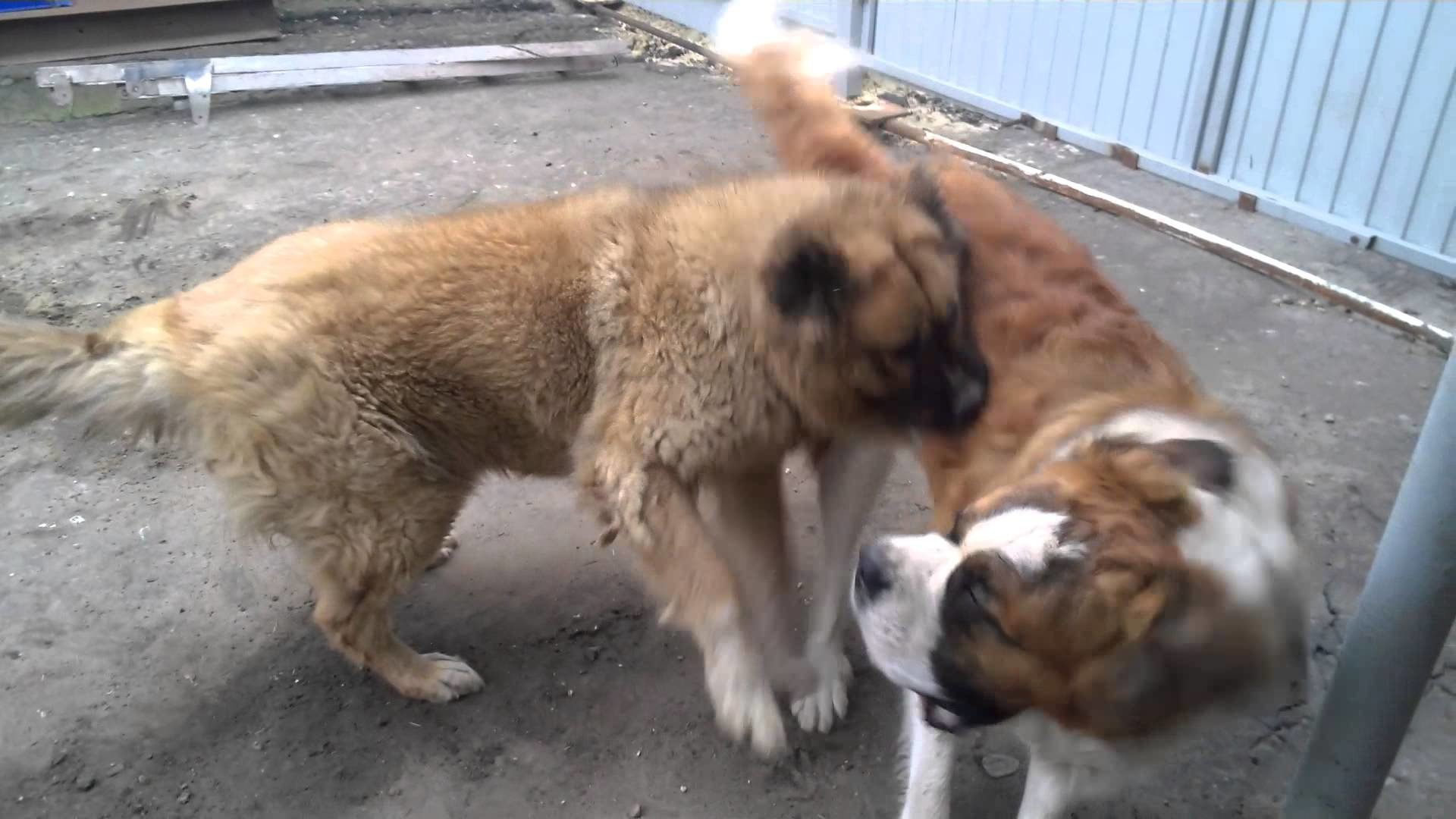 Схватка немецкой овчарки и алабая