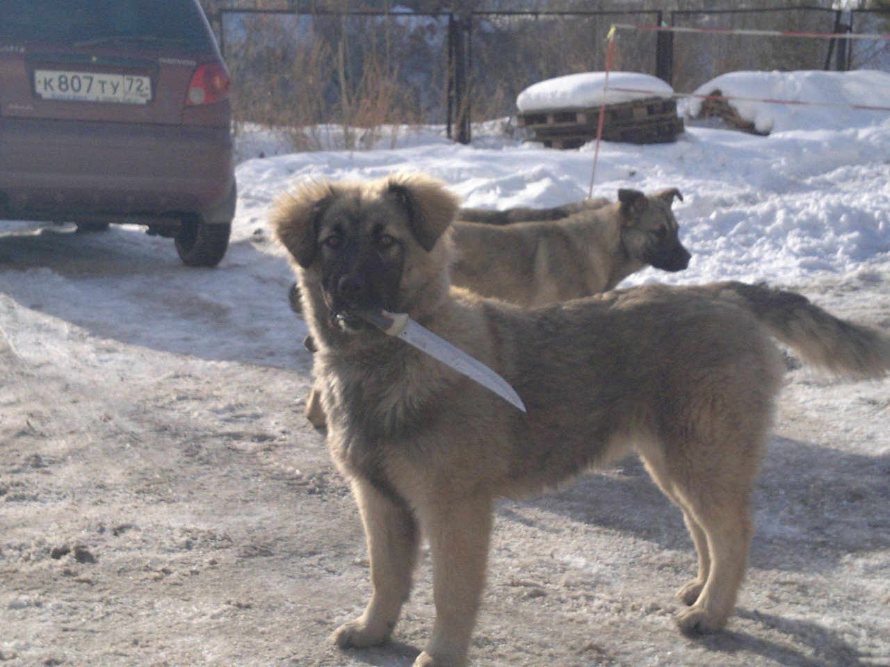 Кавказская овчарка с ножом
