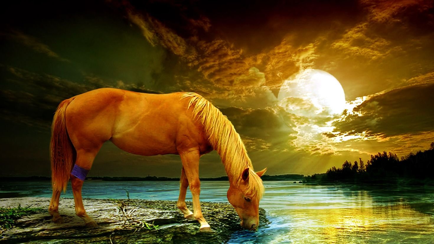 Фэнтези красивая природа кони