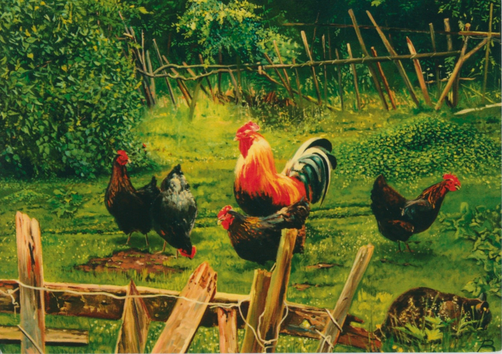 Деревенский пейзаж с курами