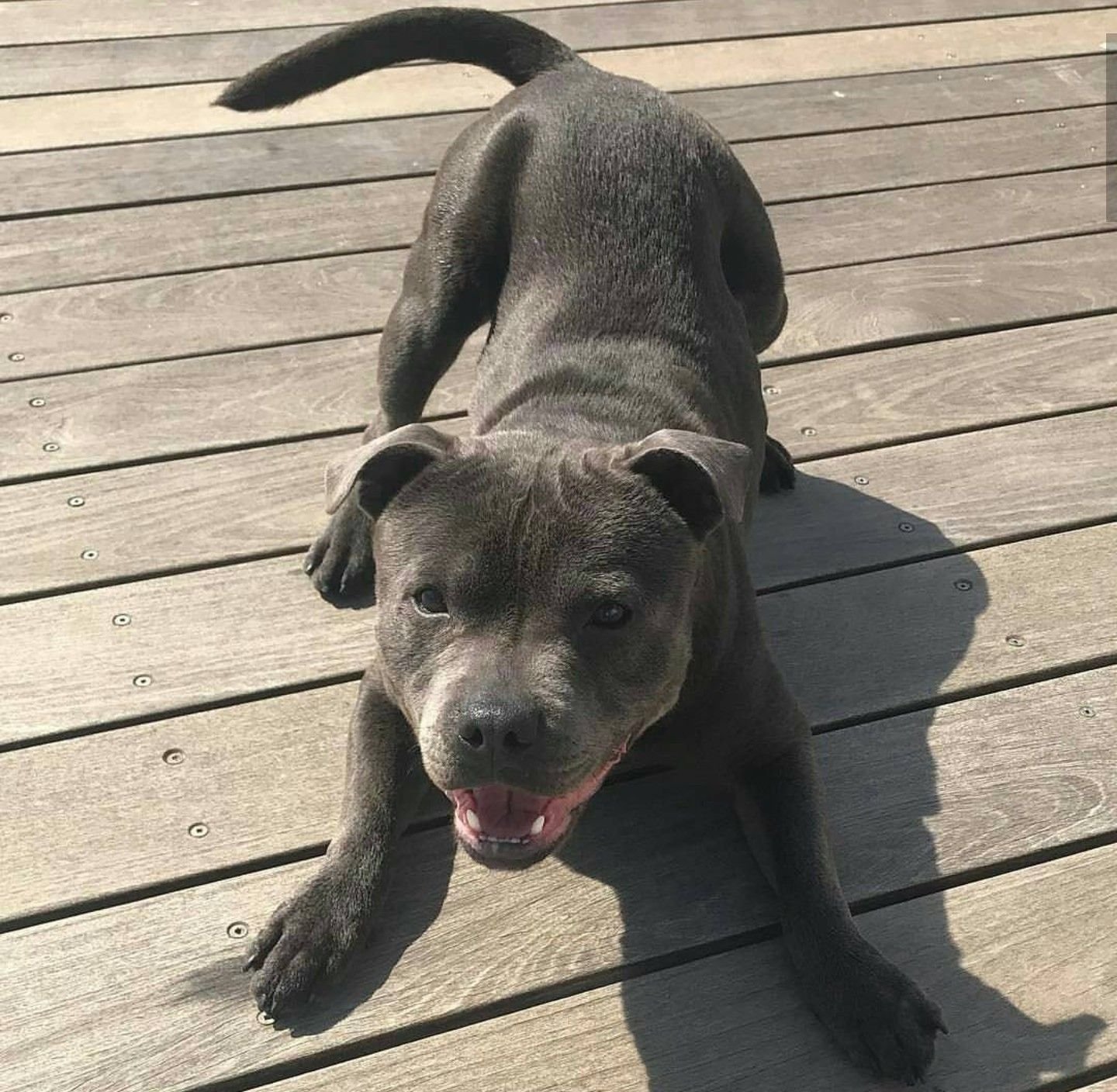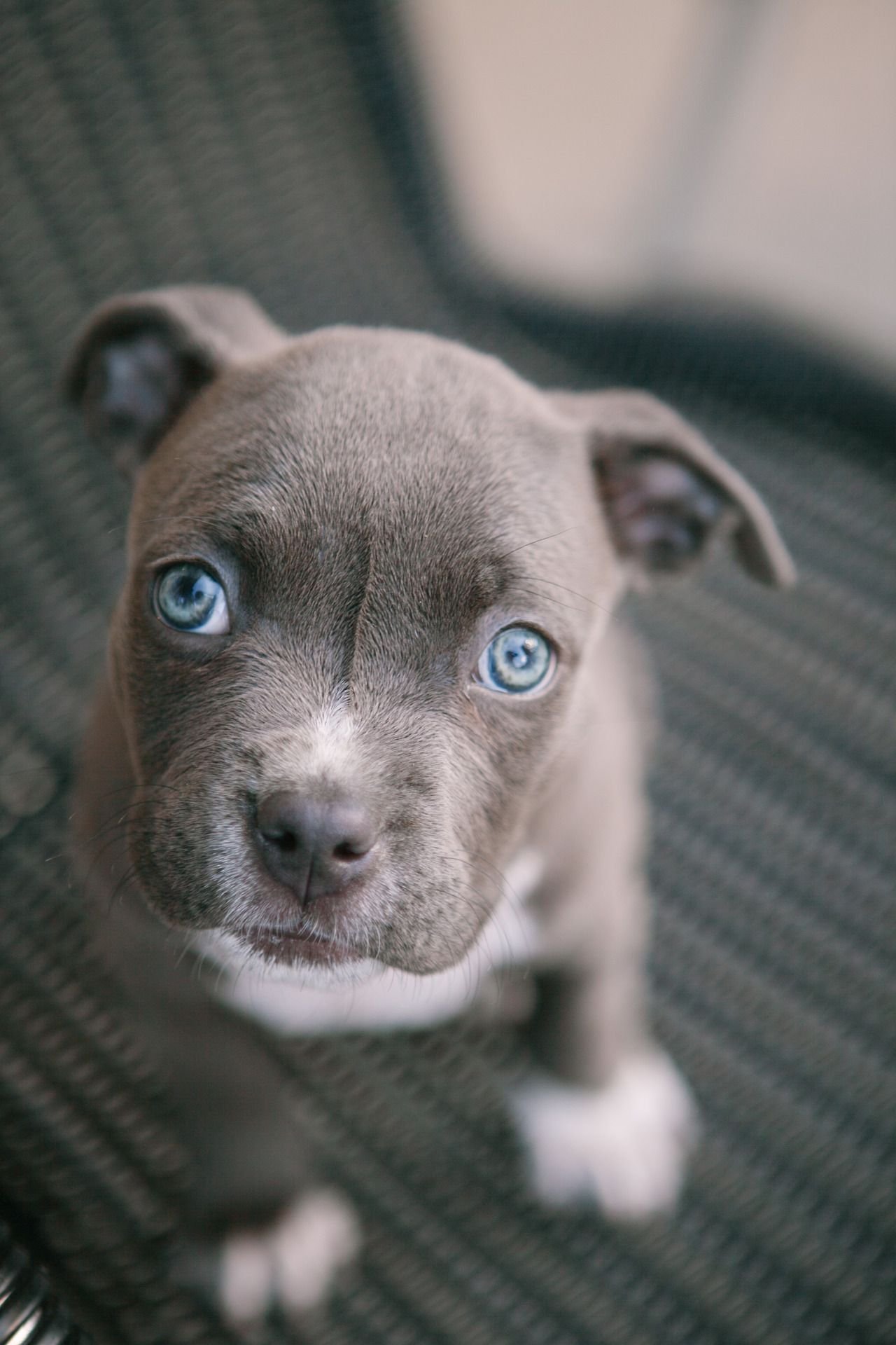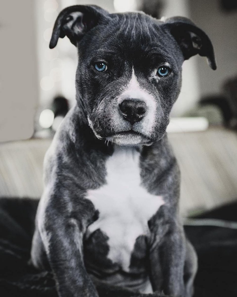 Стаффордширский терьер серый с голубыми глазами