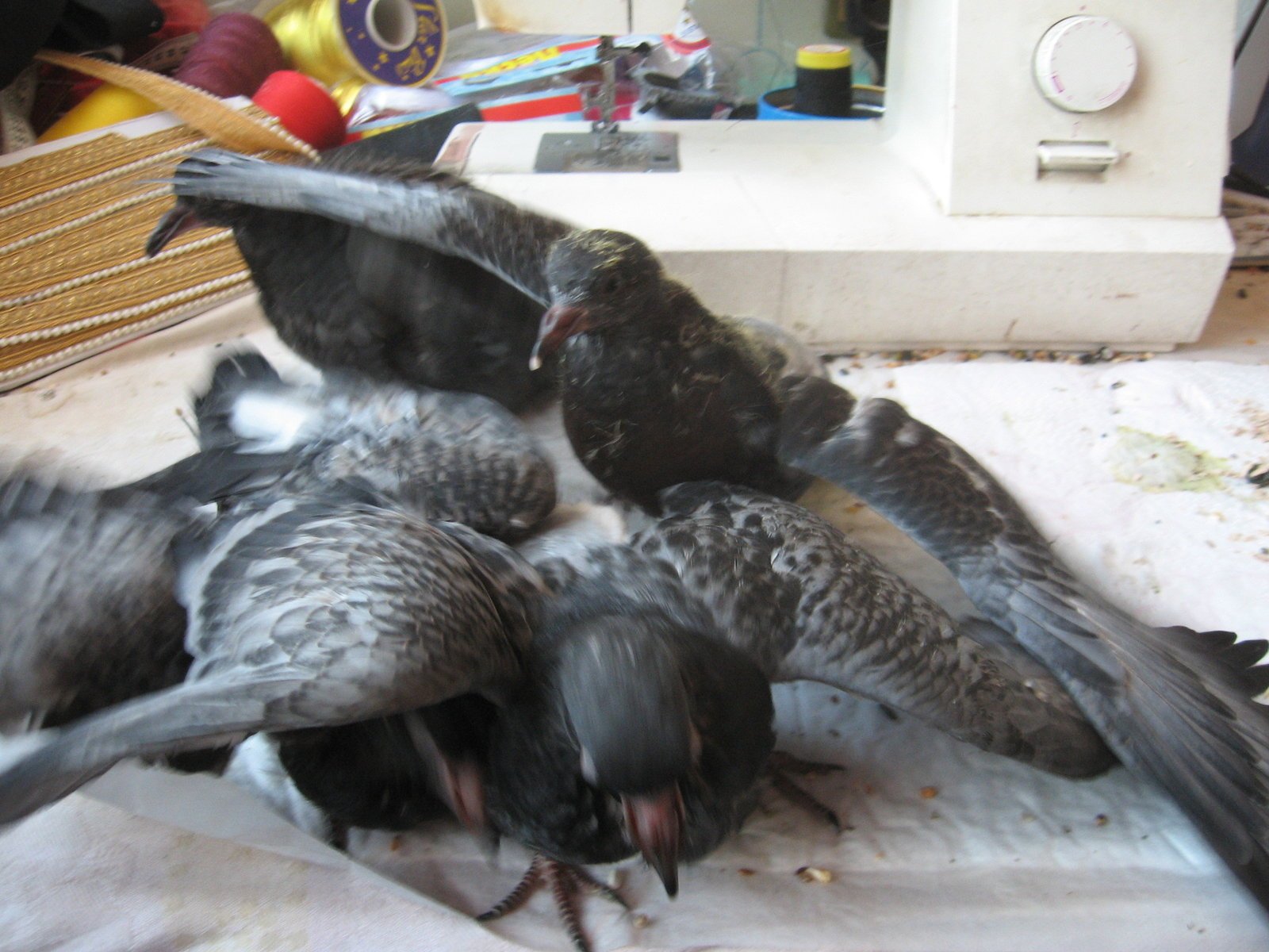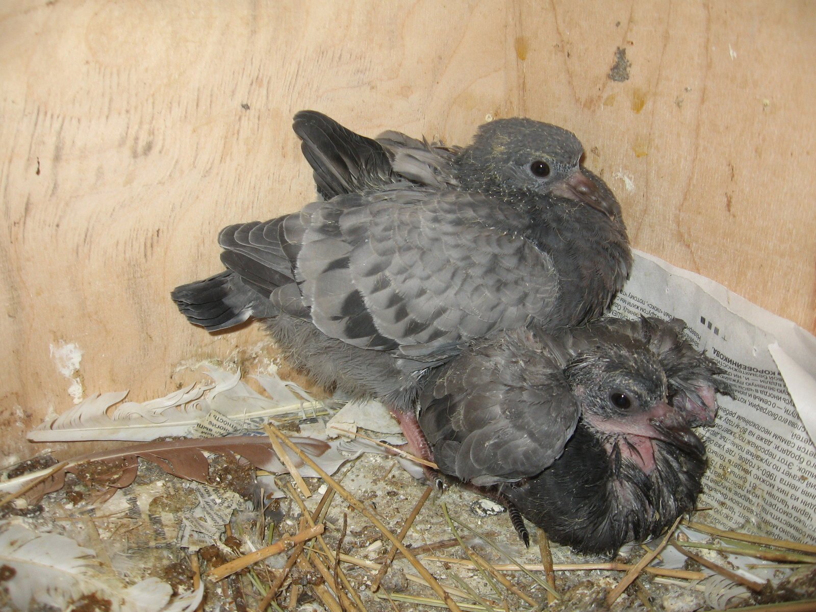 Линяющие птенцы голубей