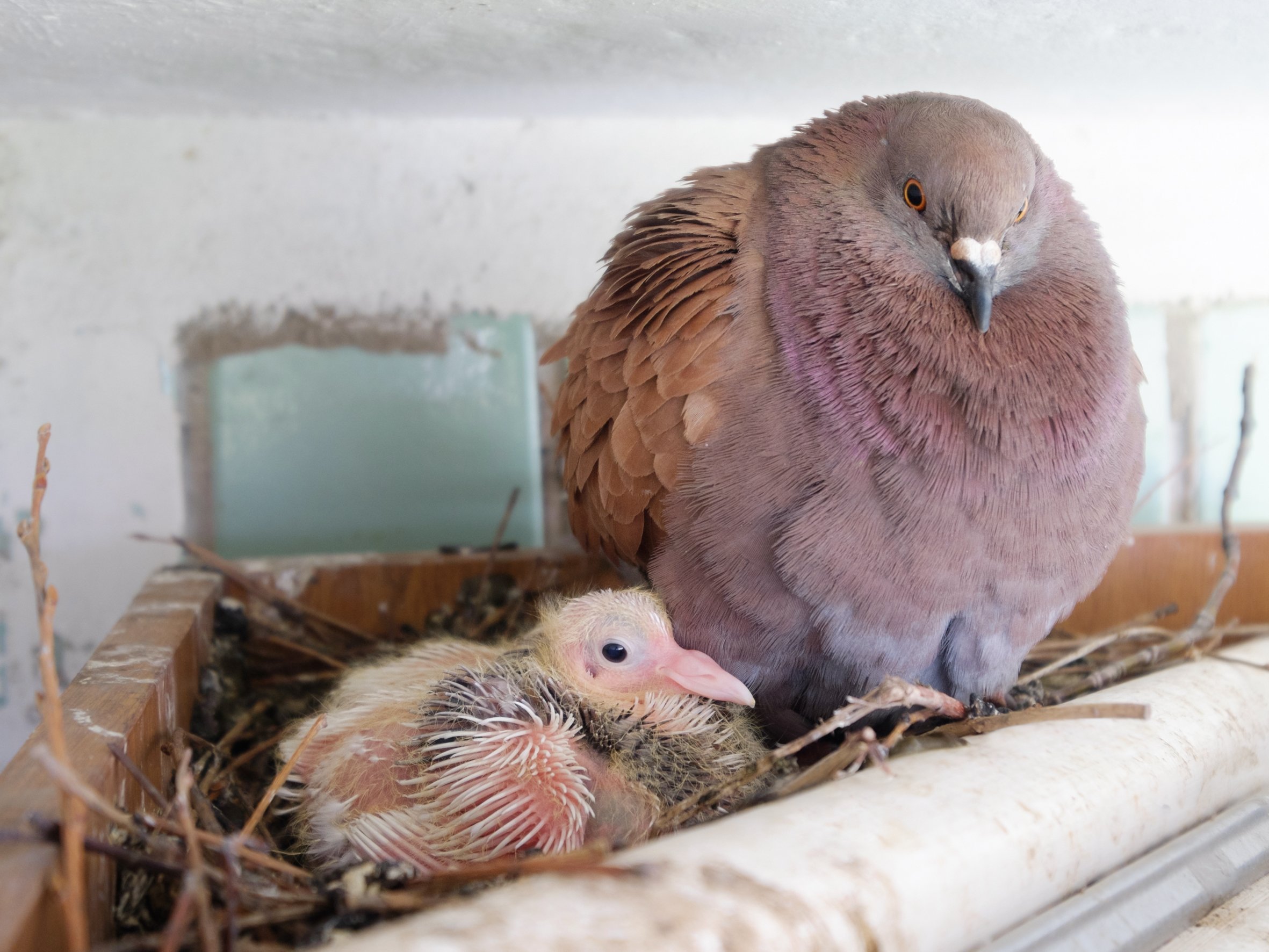 Новорождённые птенцы голубя