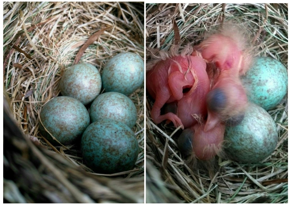 Яйца и птенцы голубей