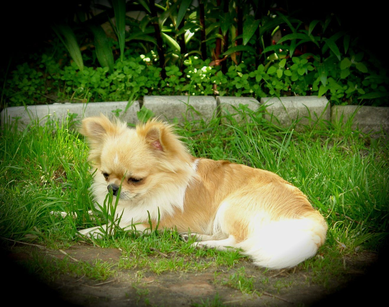 Собака чихуахуа на траве