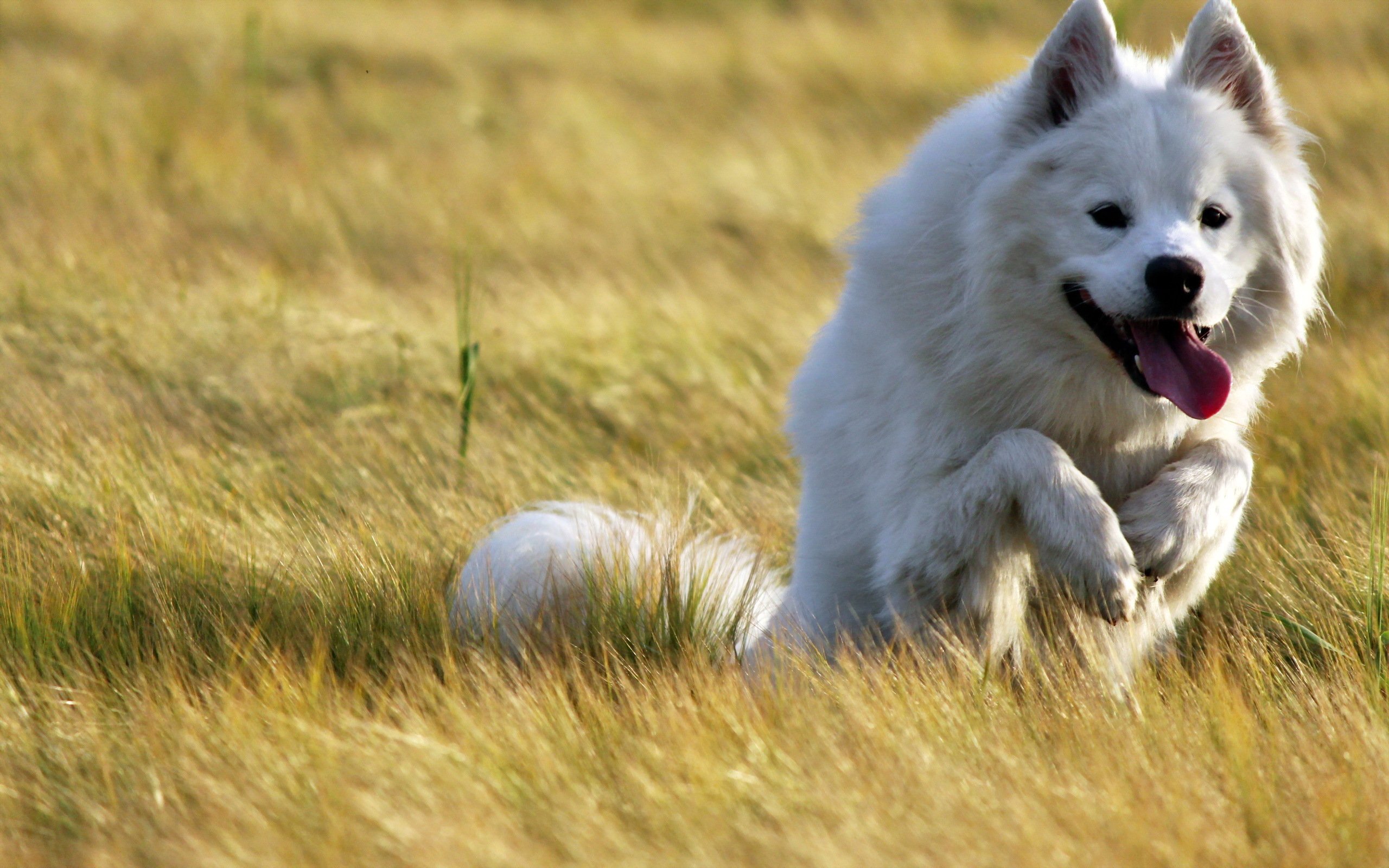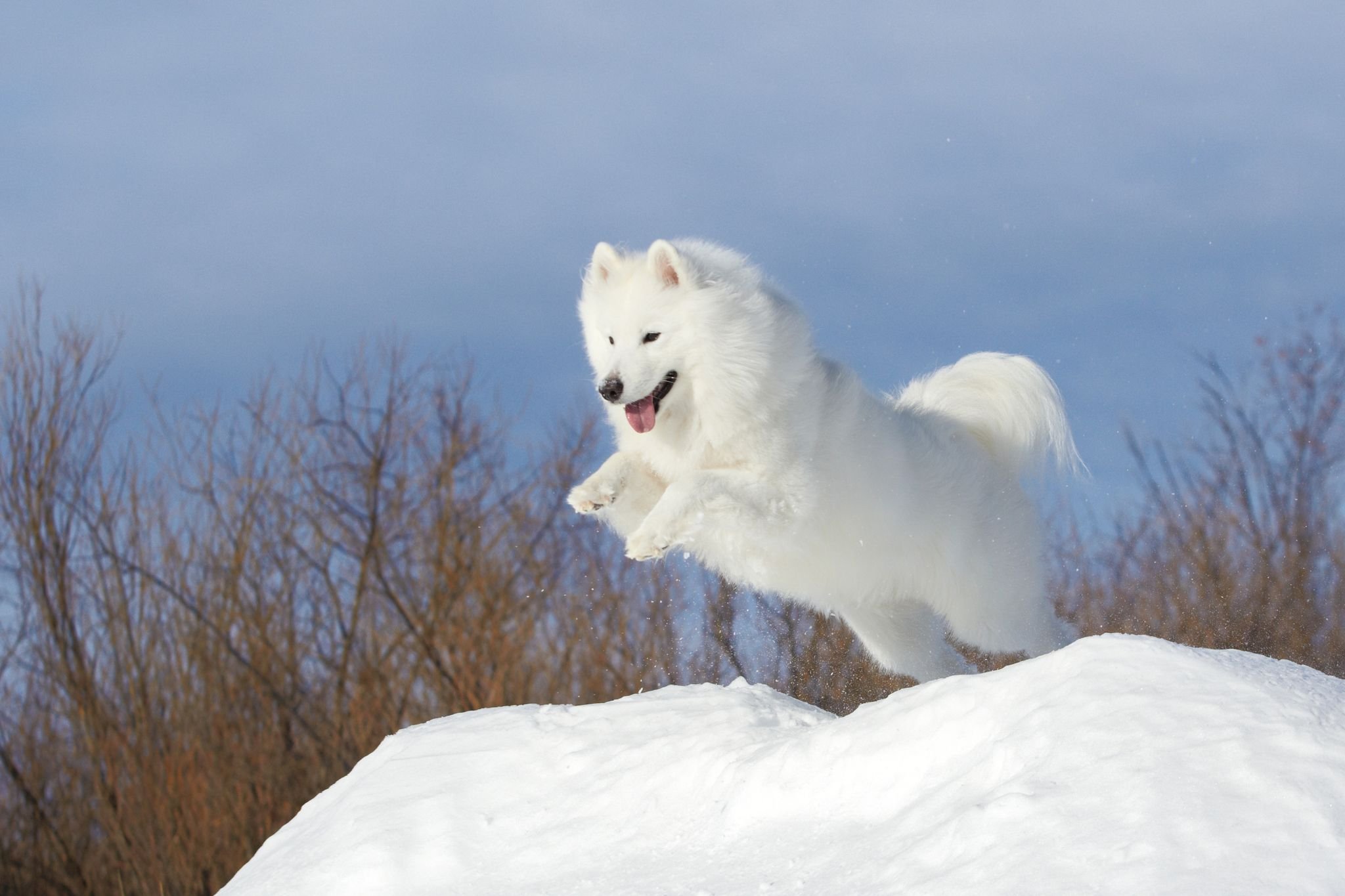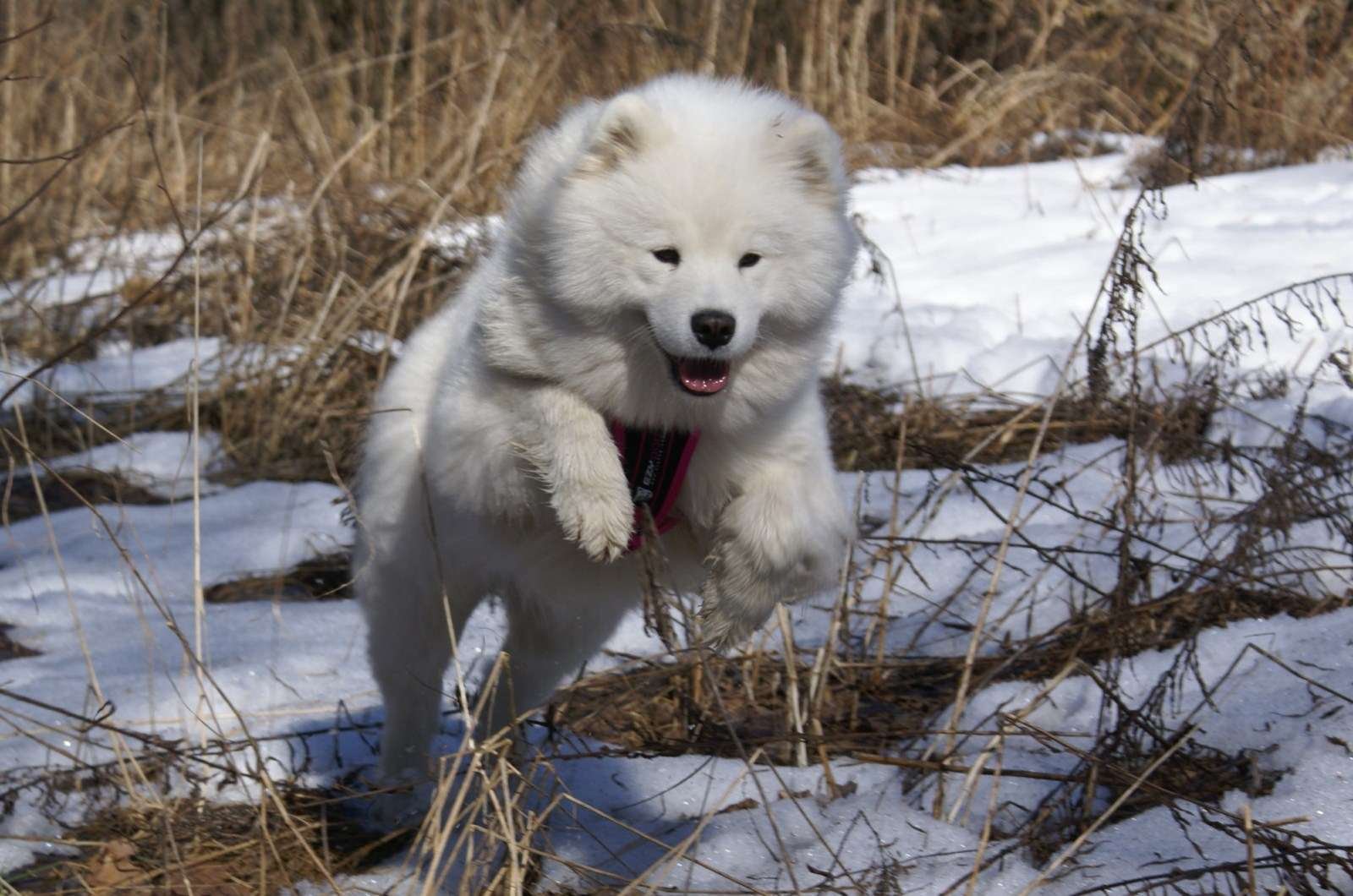 Самоедская лайка в прыжке