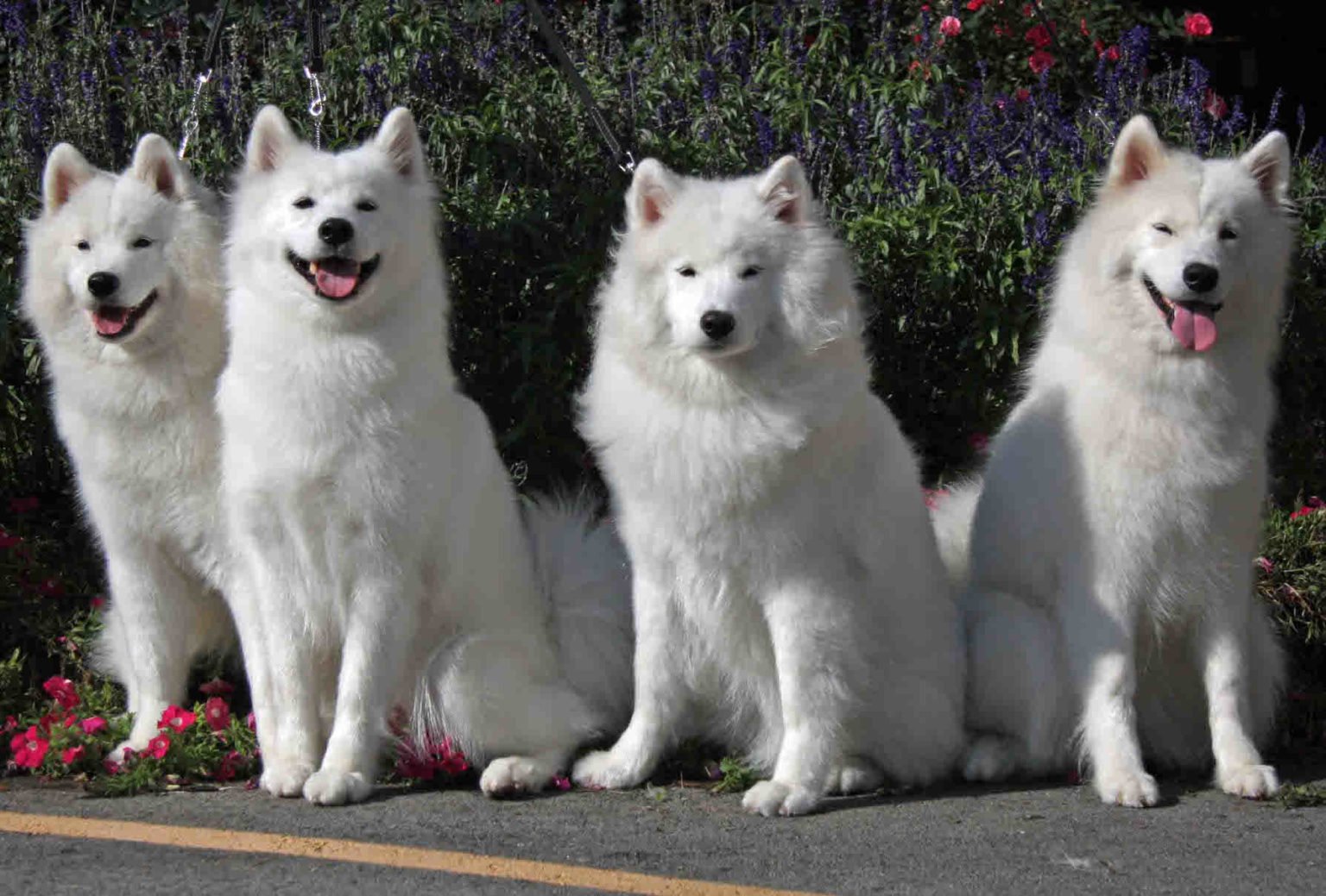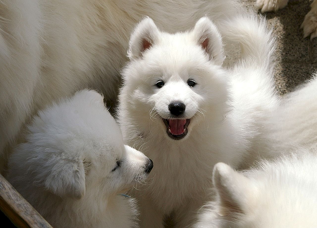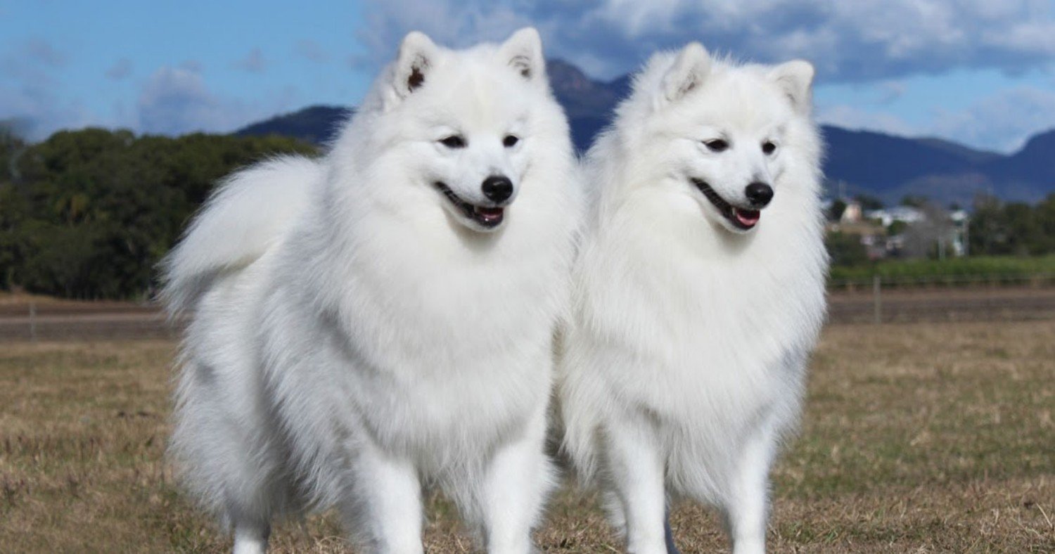 Самоедская собака и японский шпиц