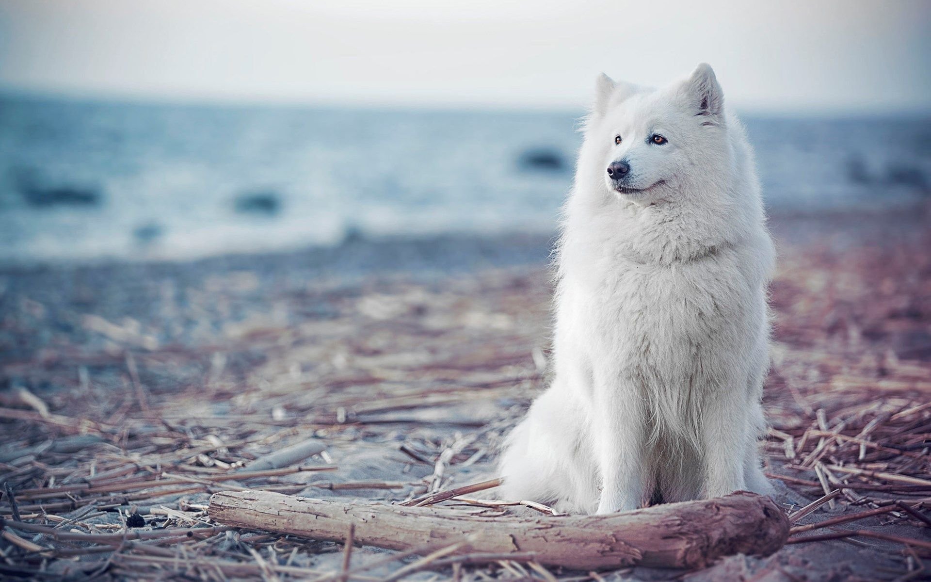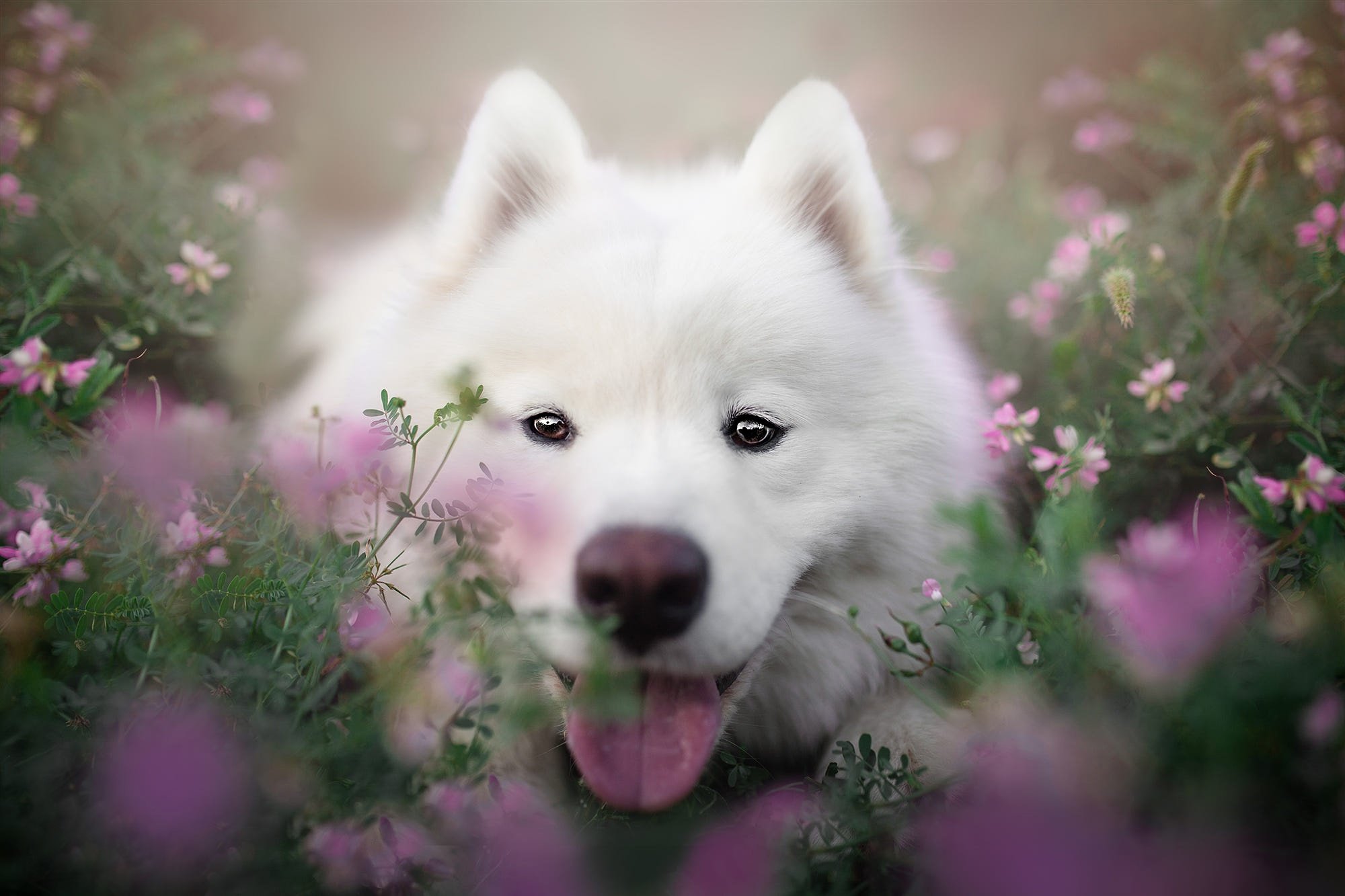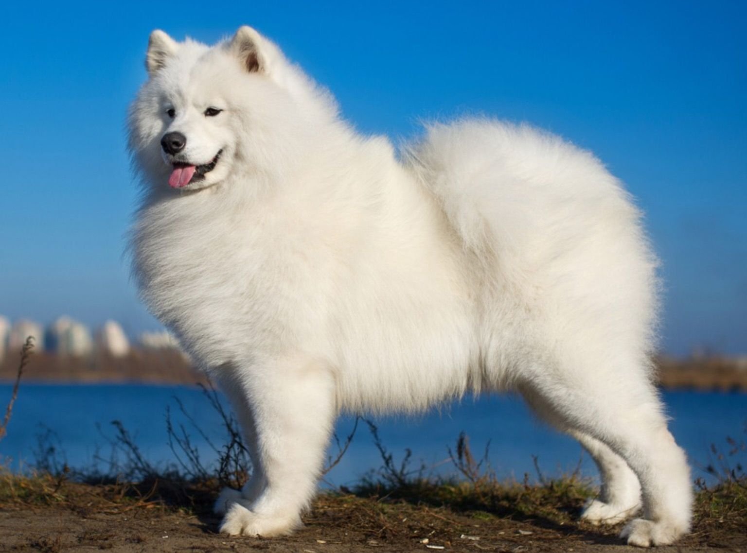 Самоед на красивом фоне