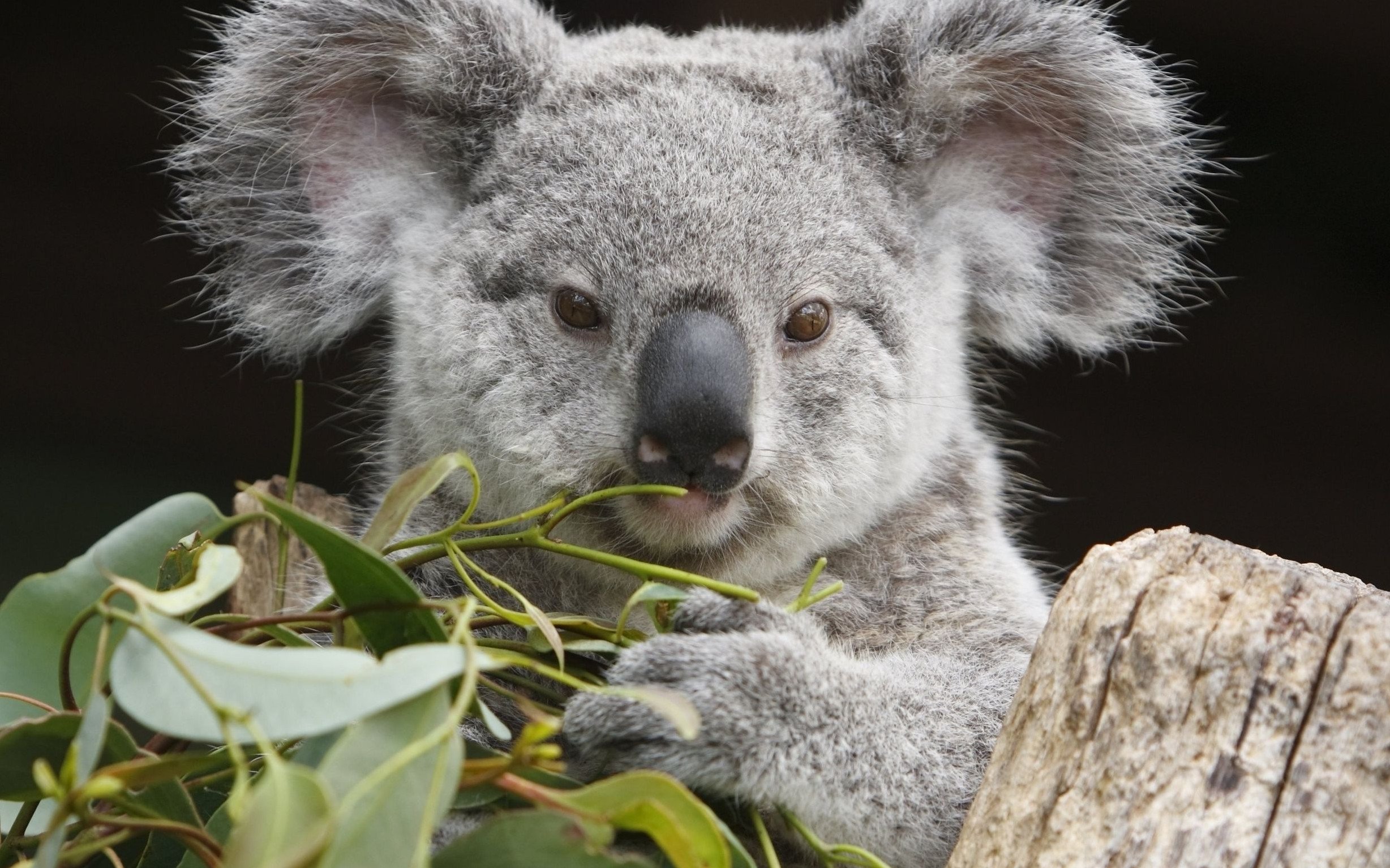 Коала с листом во рту