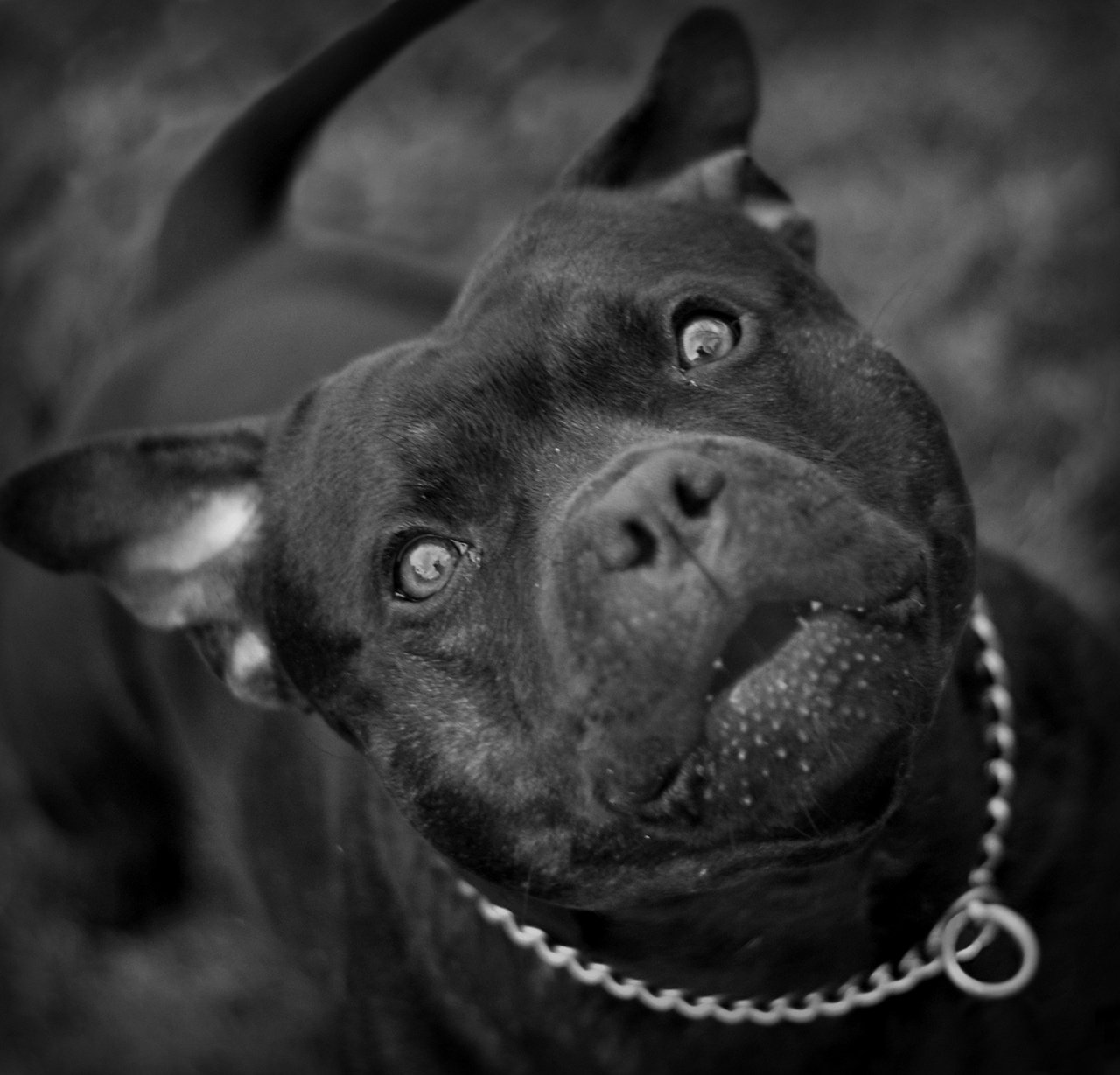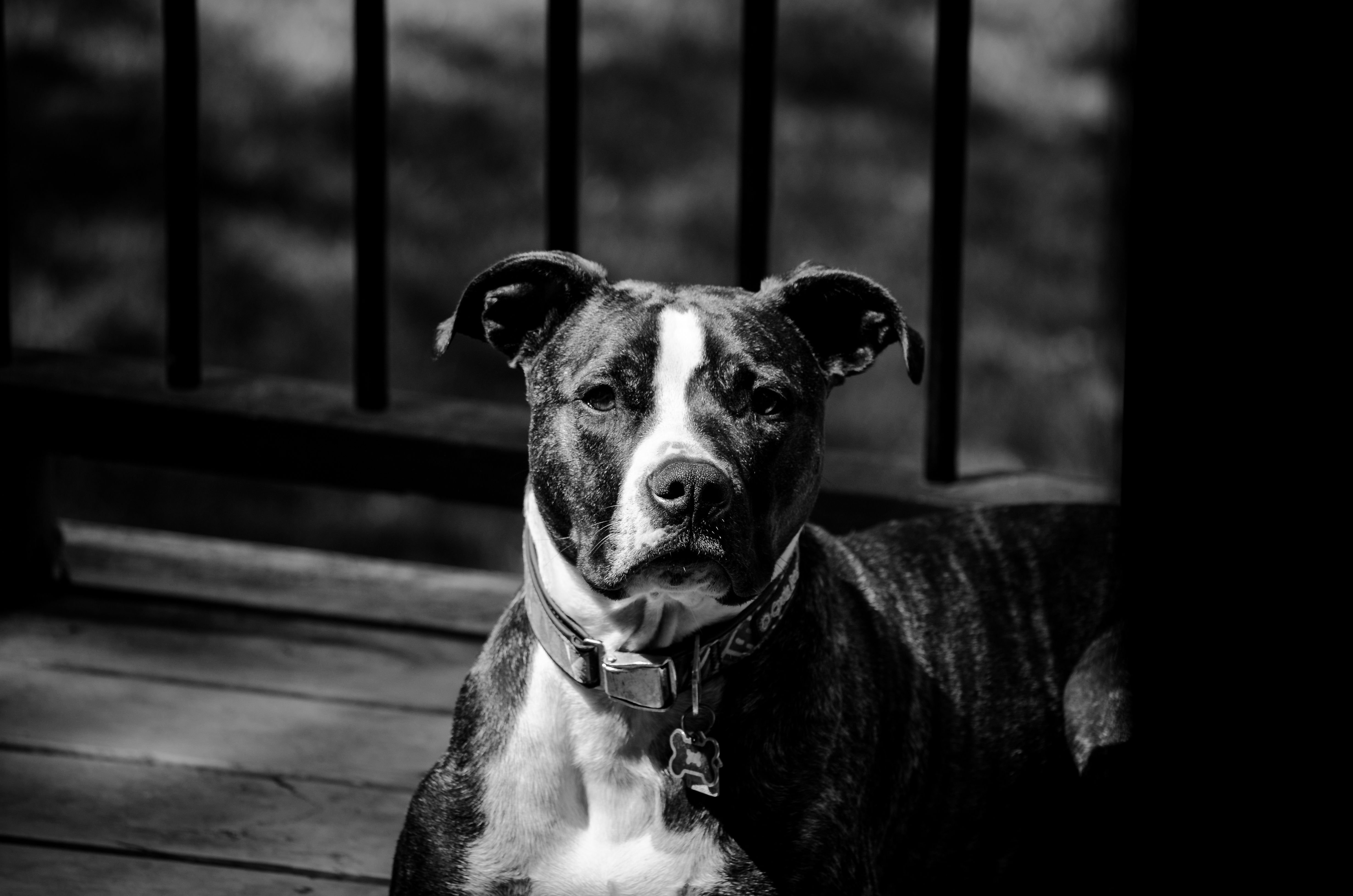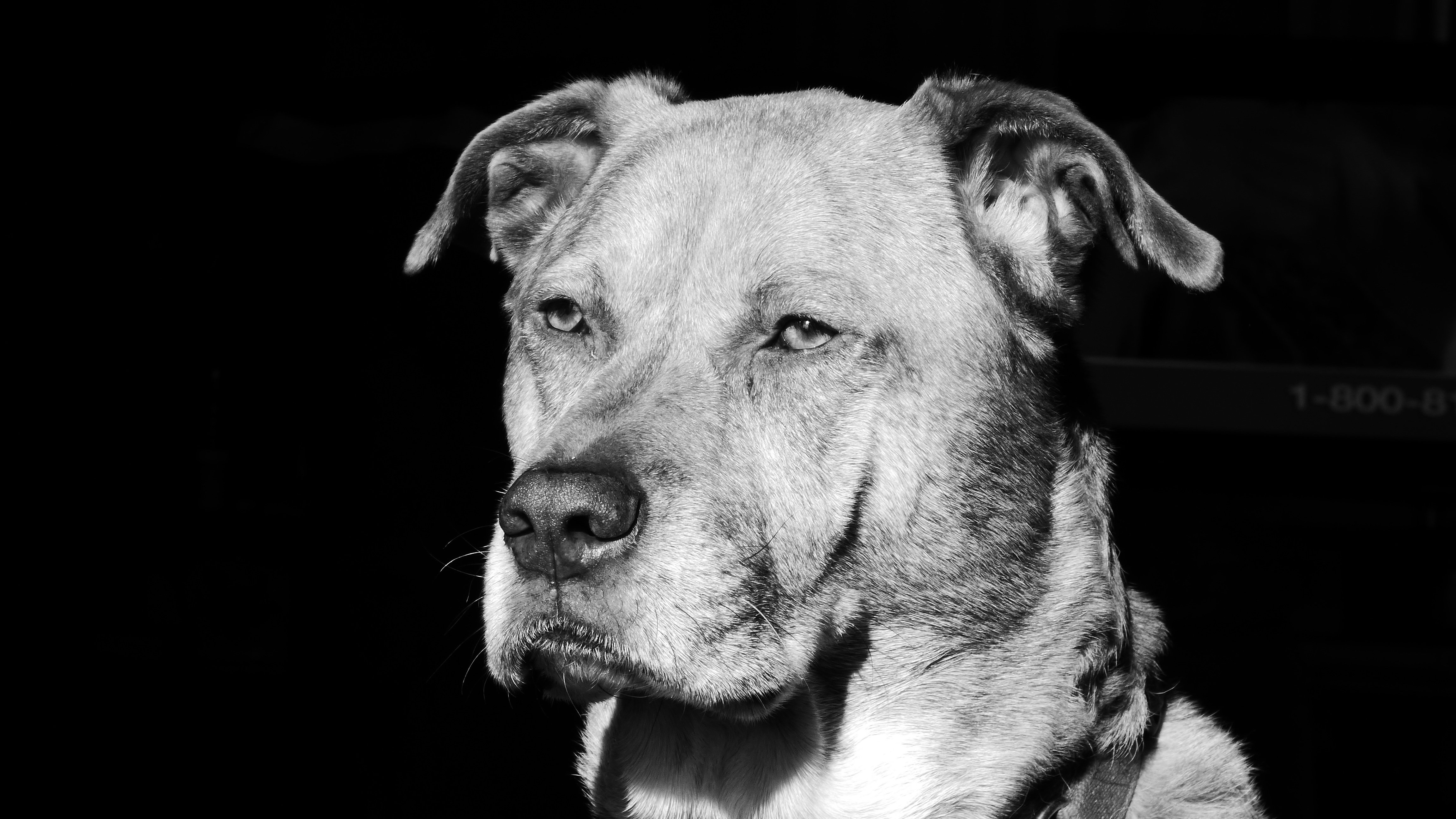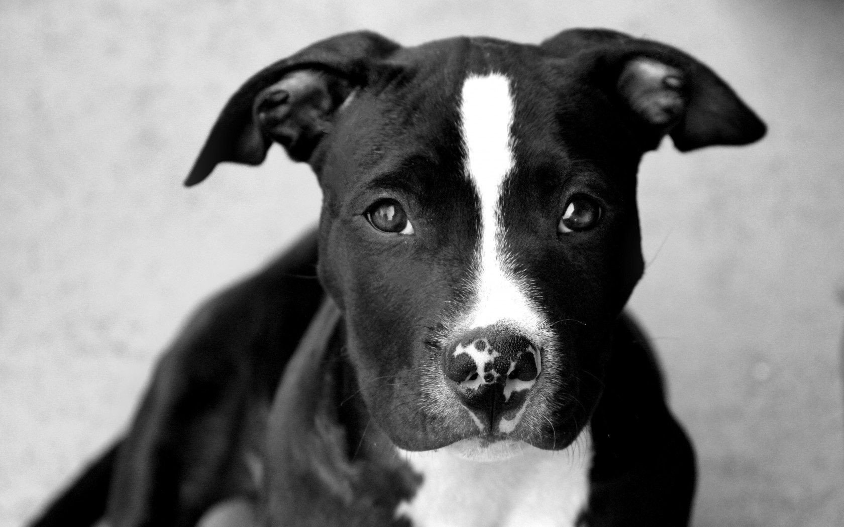 Морда питбуля на чёрно-белом фоне