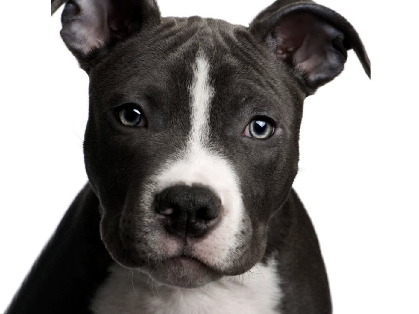 Чёрный питбуль с голубыми глазами