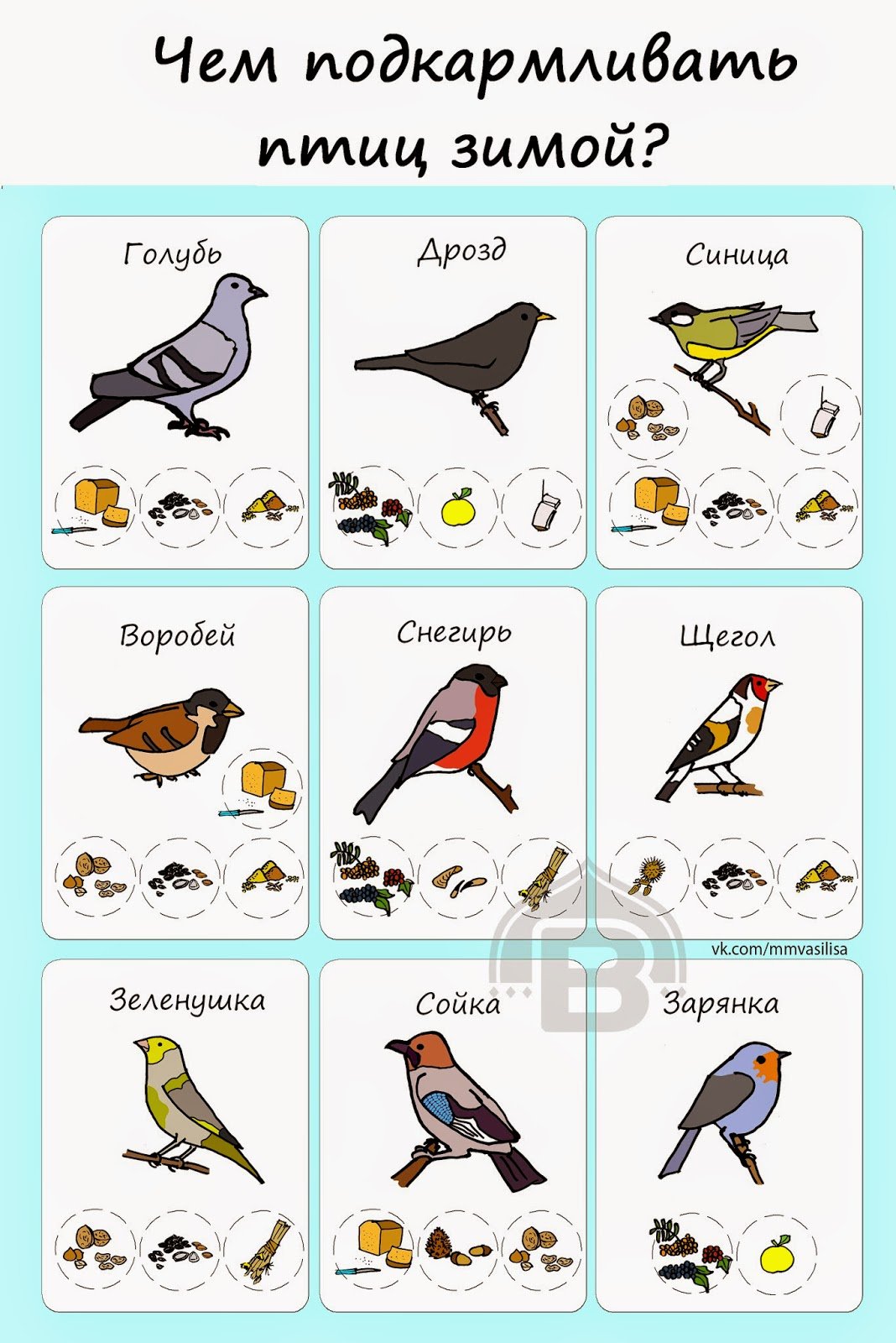 Список зимующих птиц России для детей
