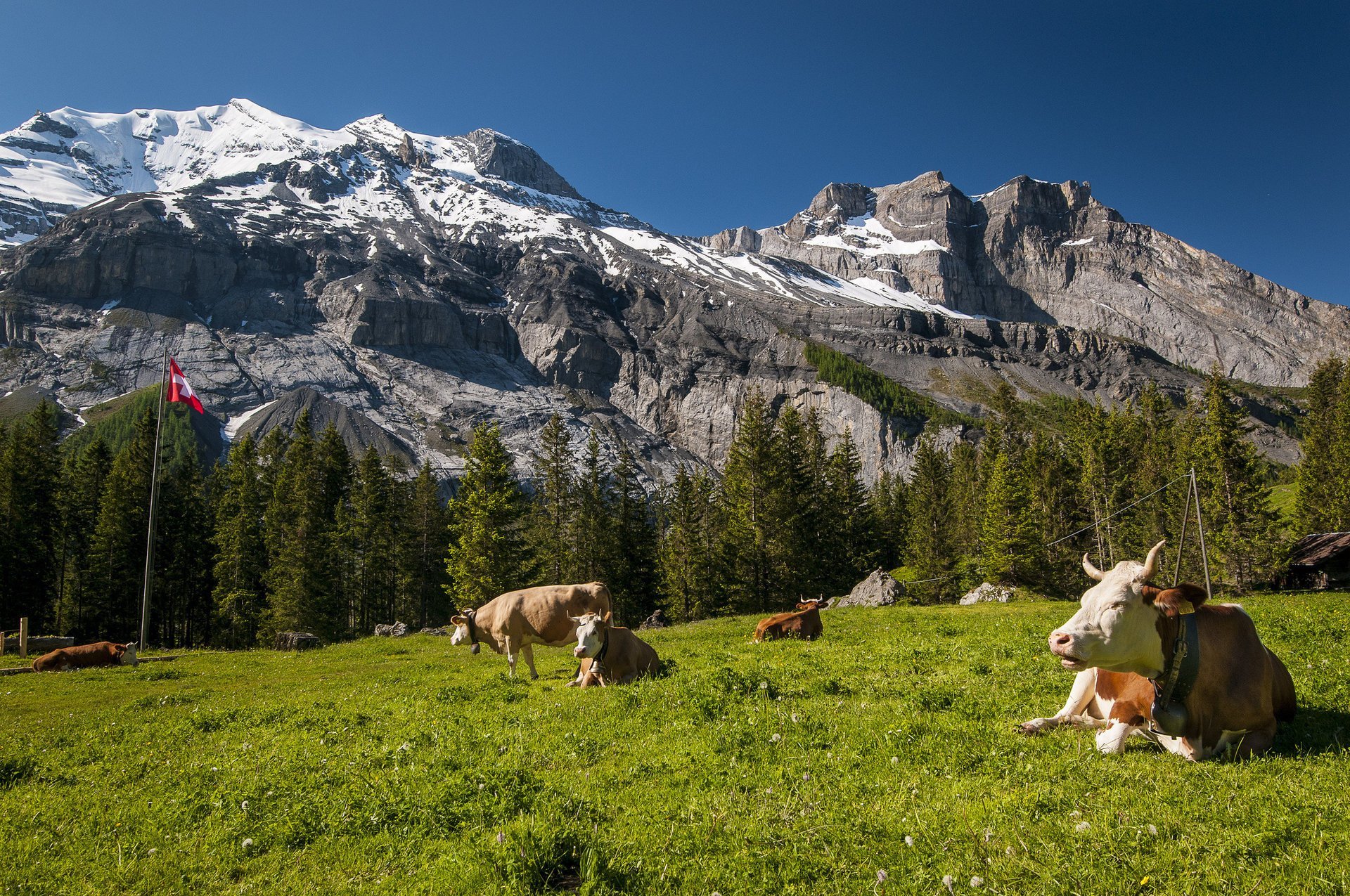 Альпийские Луга с коровами Швейцария