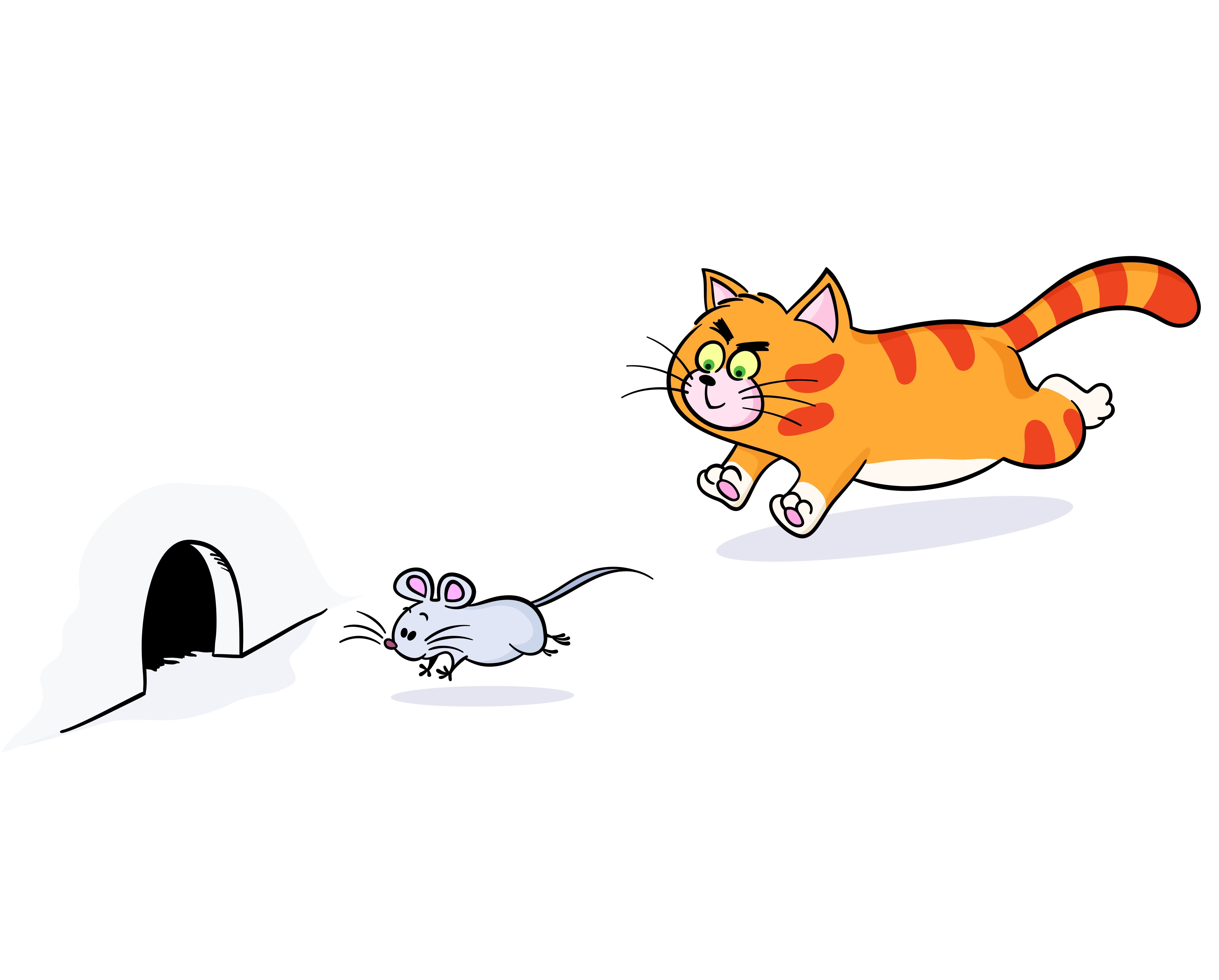 Кот гонится за мышью