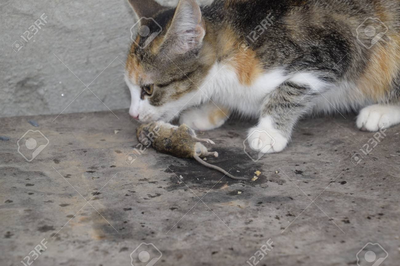 Кот ест мышь