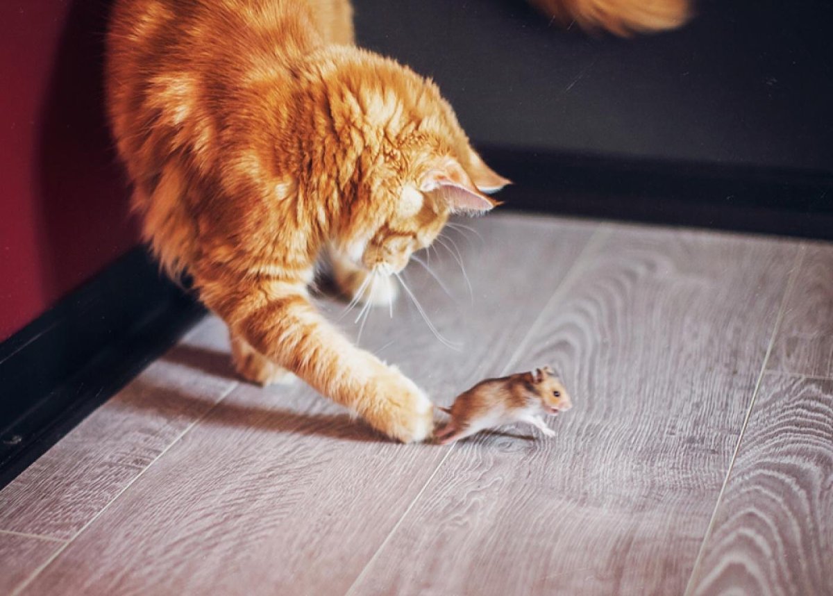Рыжий кот и мышь