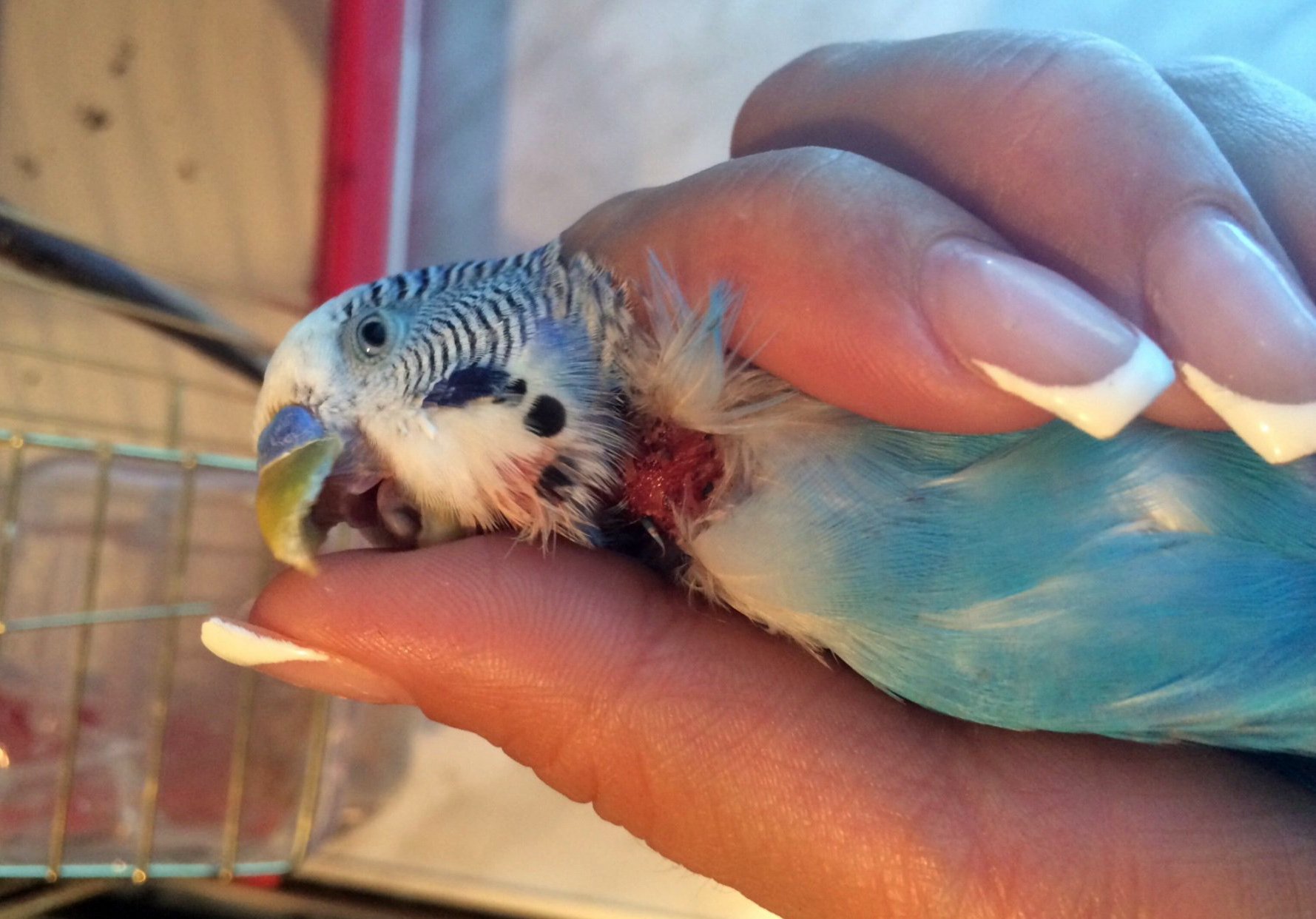 У волнистого попугая кровь из клюва