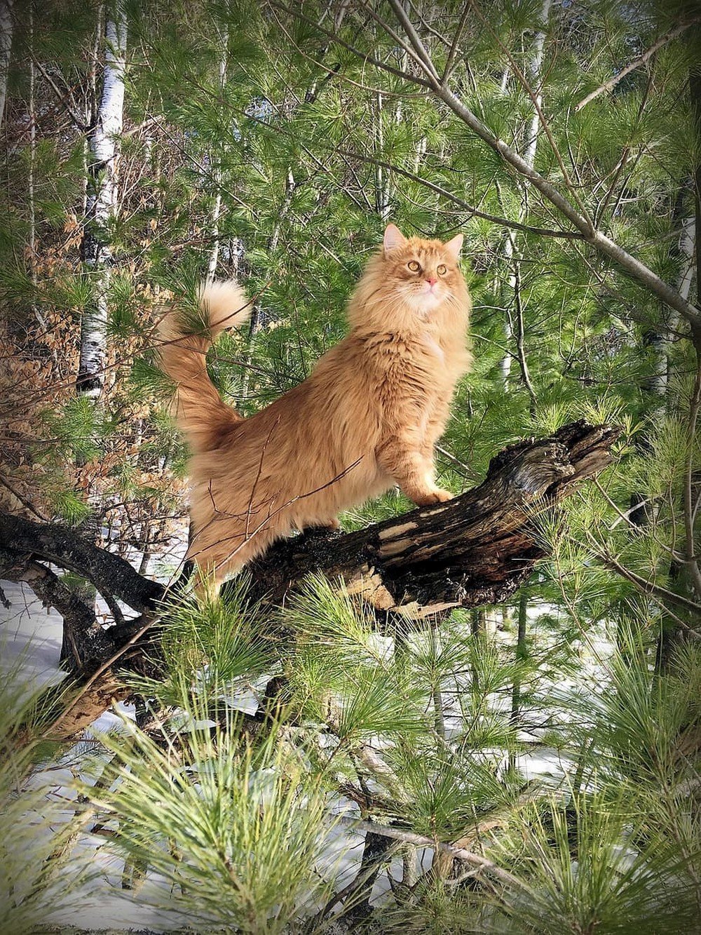 Рыжий Мейн кун в снегу
