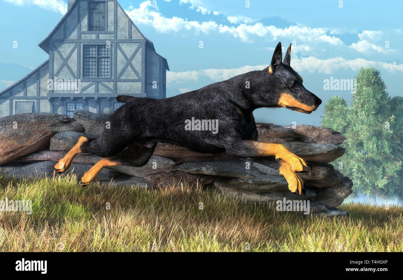 Доберман в прыжке арт