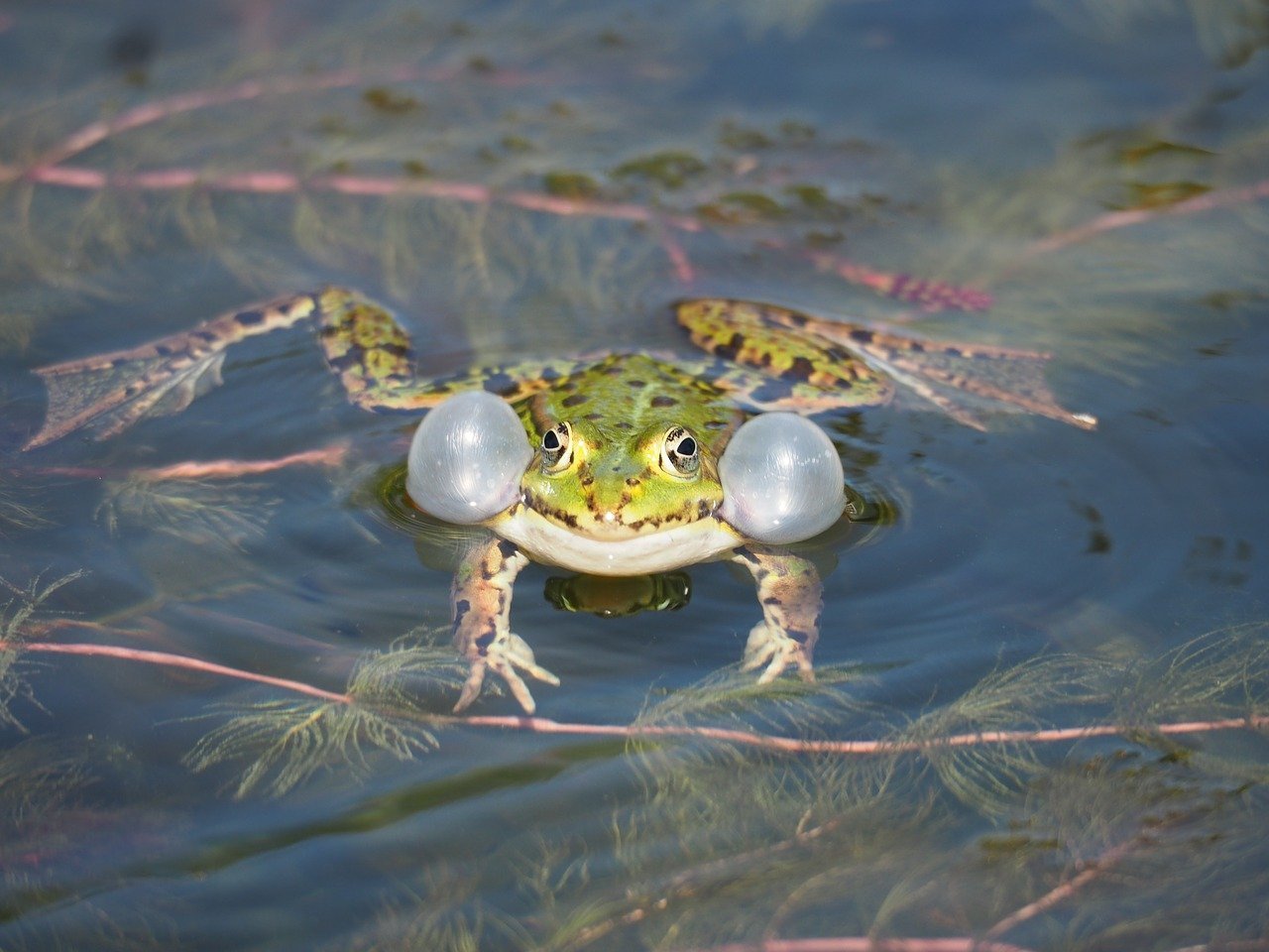 Лягушка надувает щеки