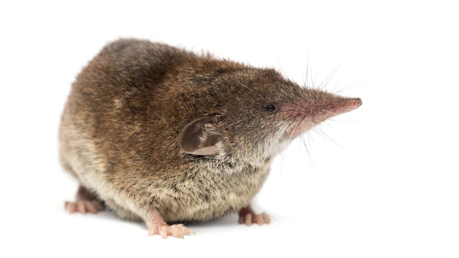 Бурозубка обыкновенная на белом фоне