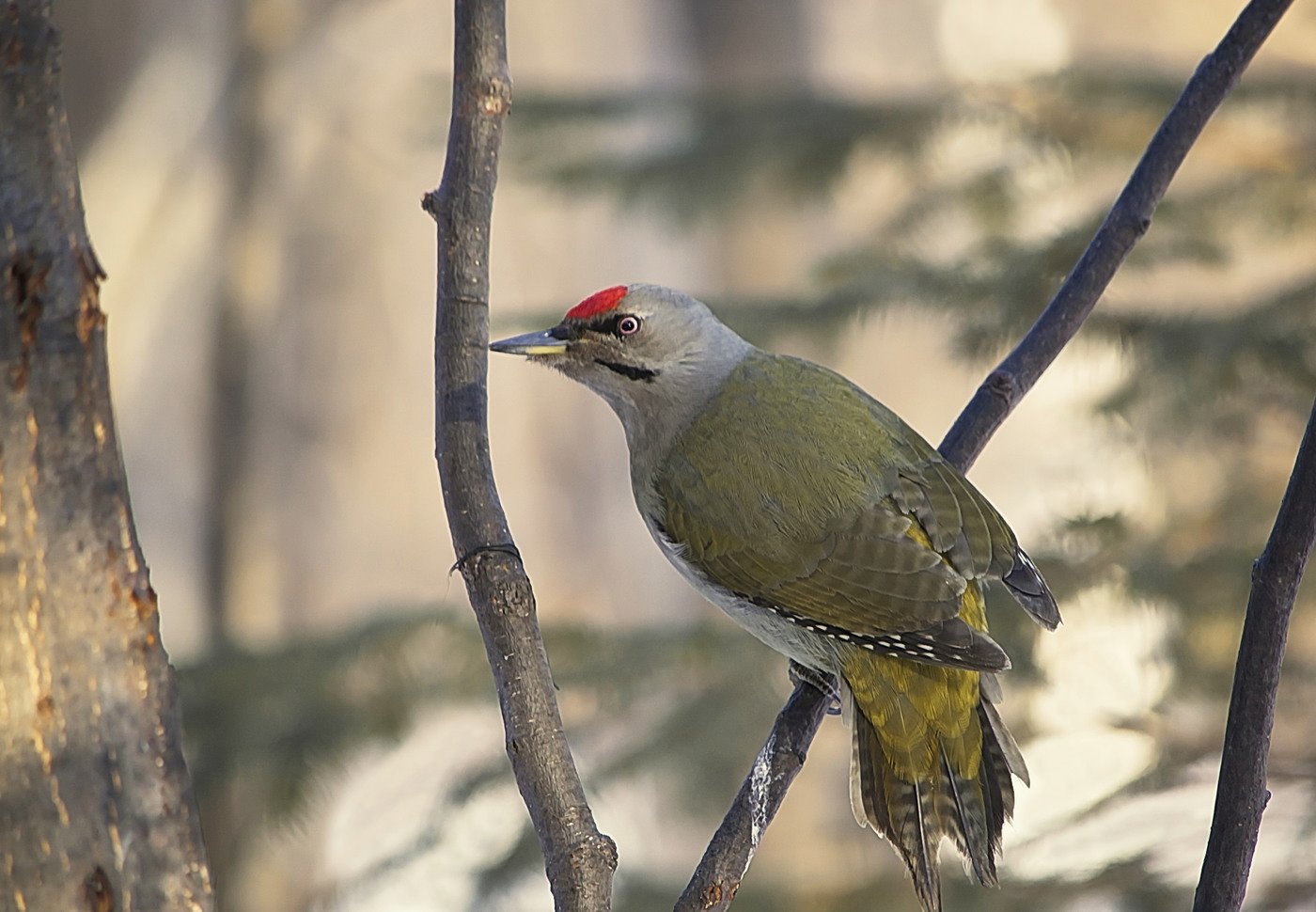 Дятел седой, или седоголовый (Picus canus). Самец