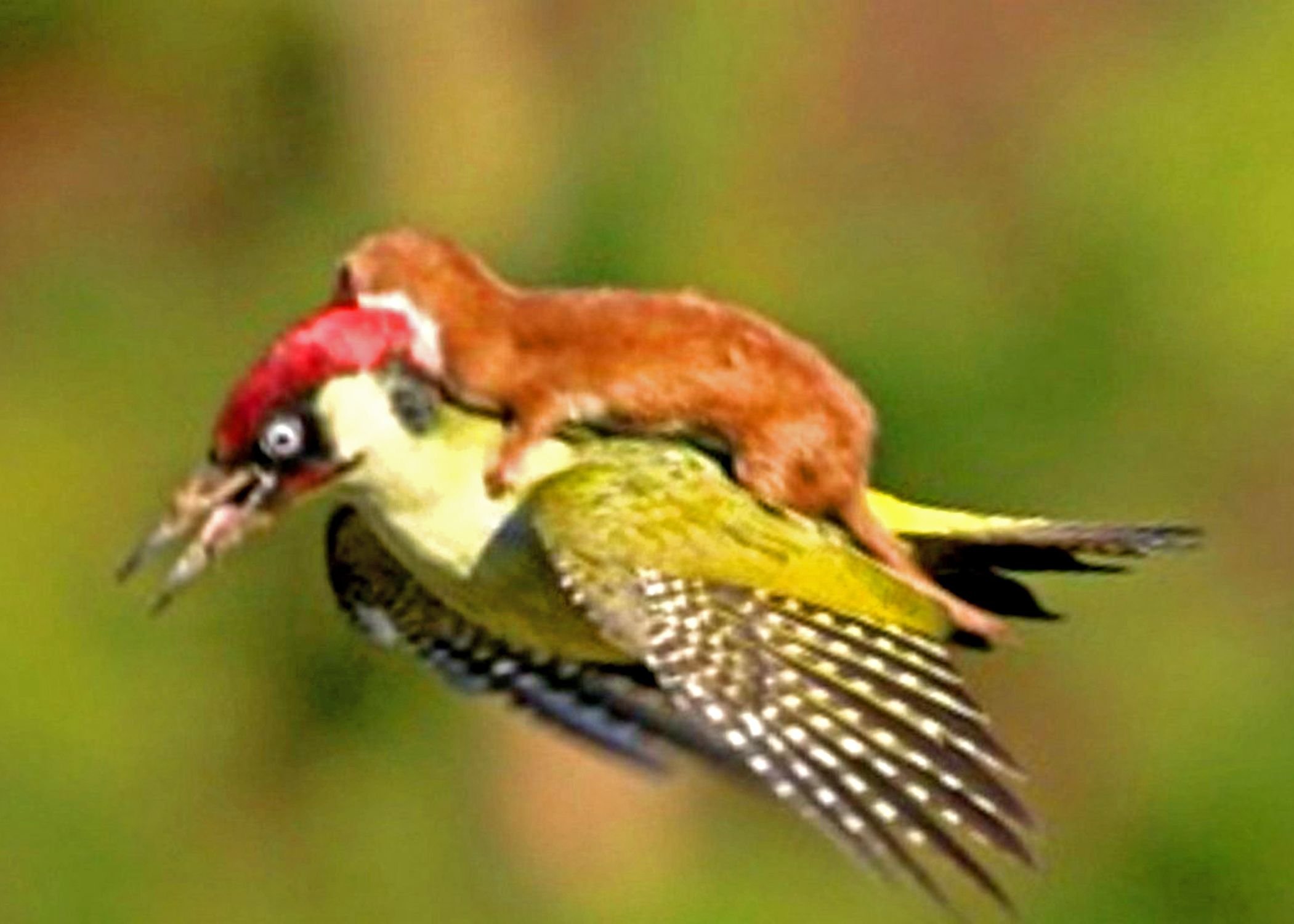 Зелёный дятел в полете фото