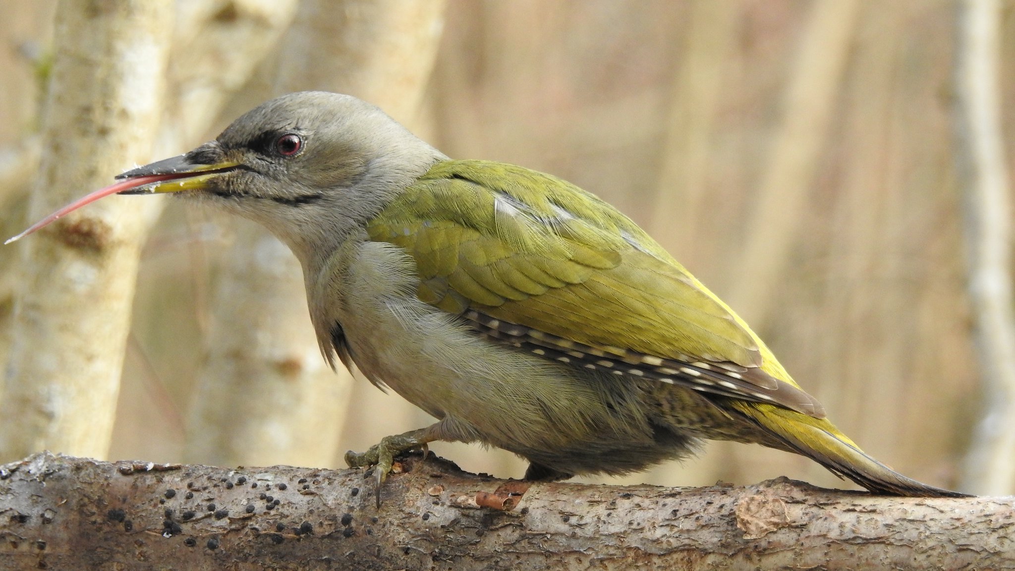Седой зеленый дятел