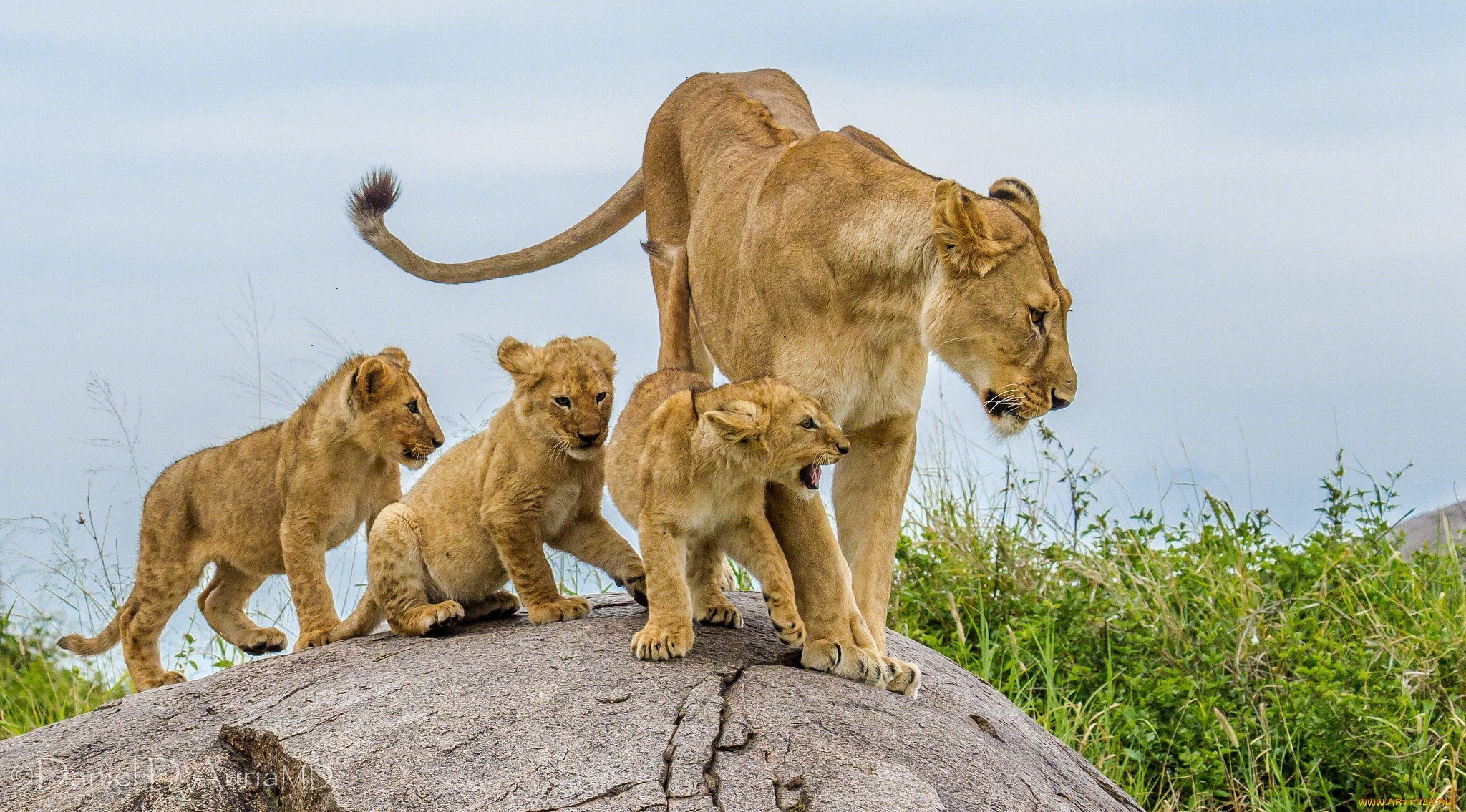 Львица с тремя львятами