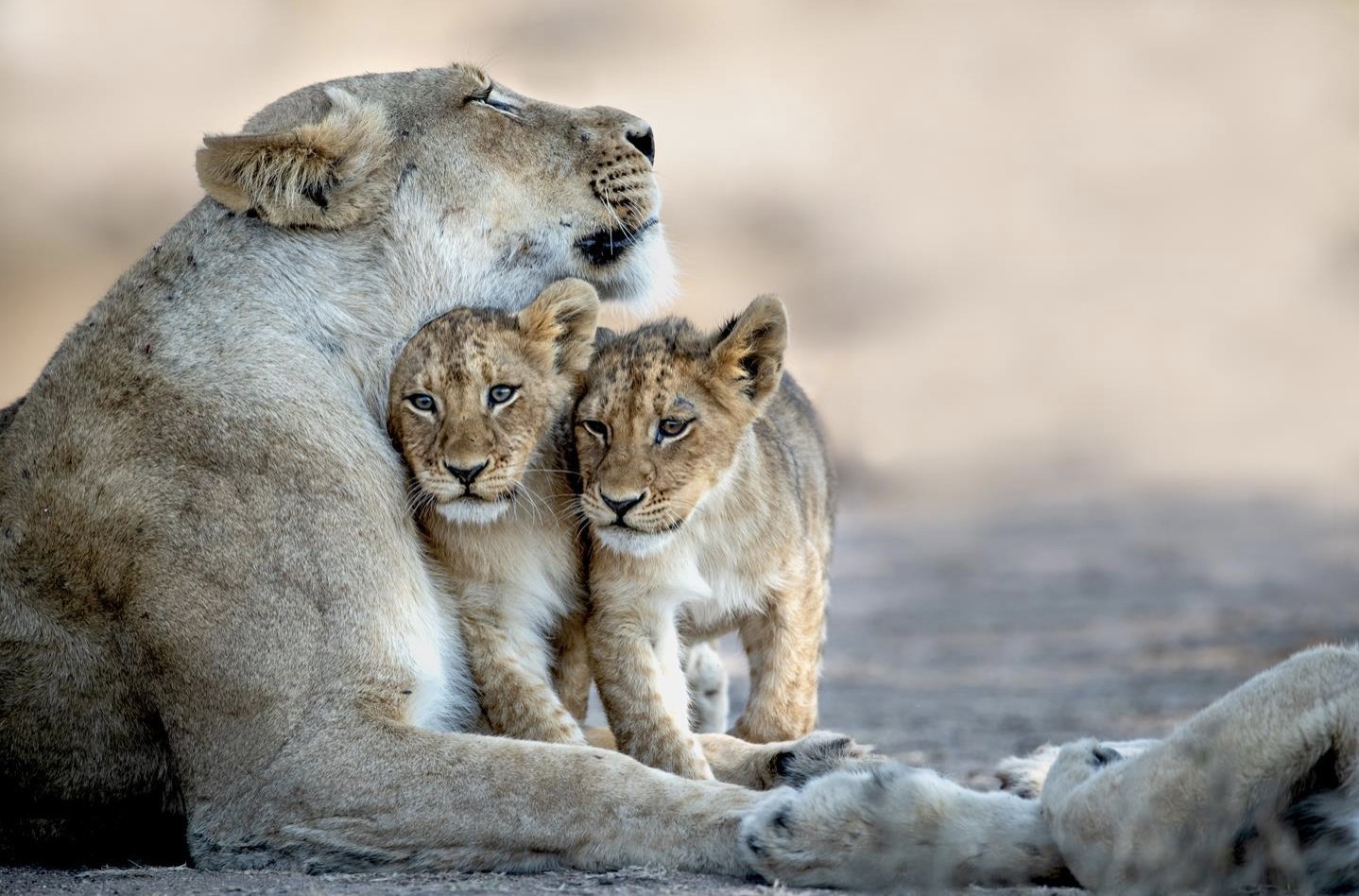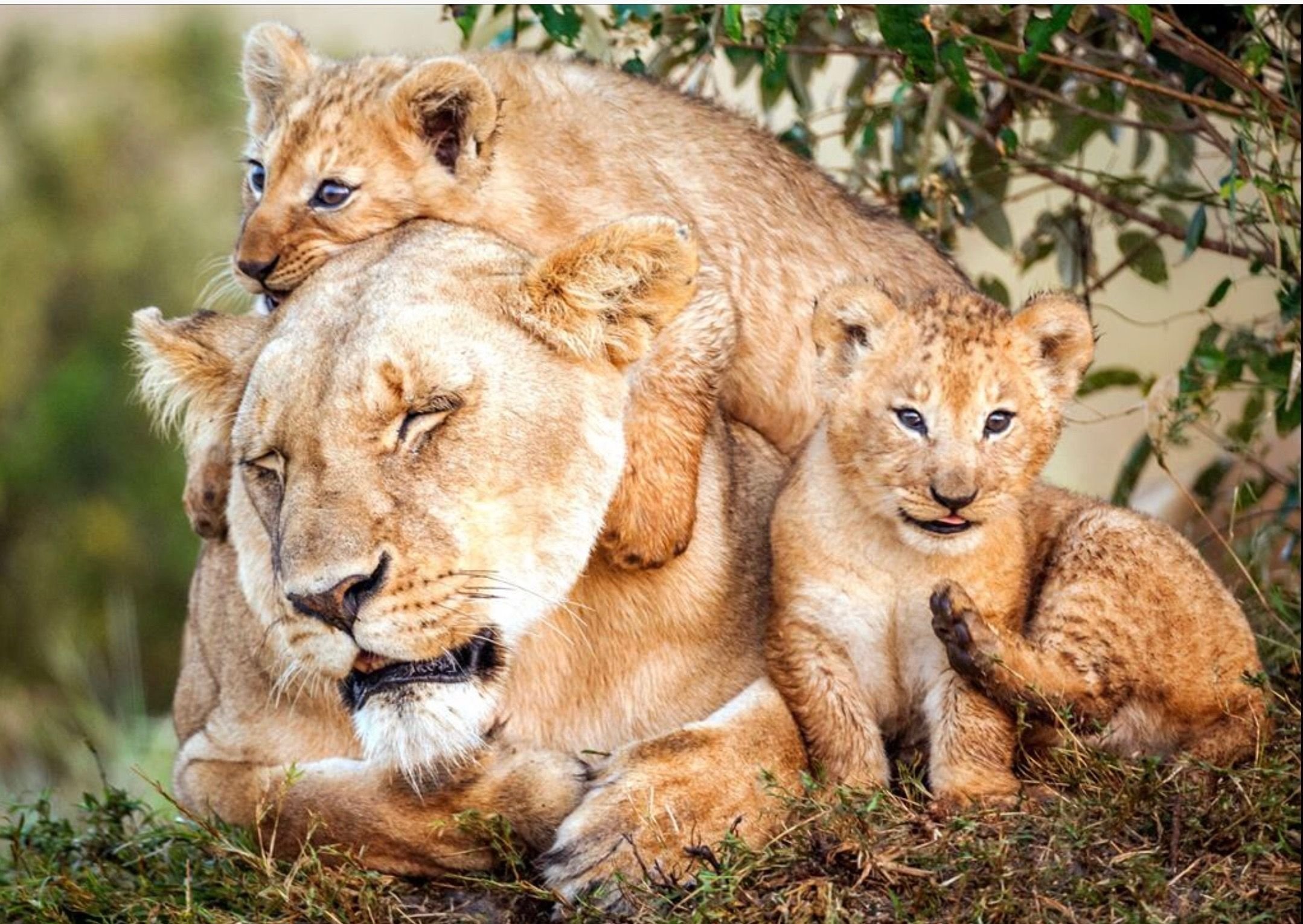Львица с двумя львятами