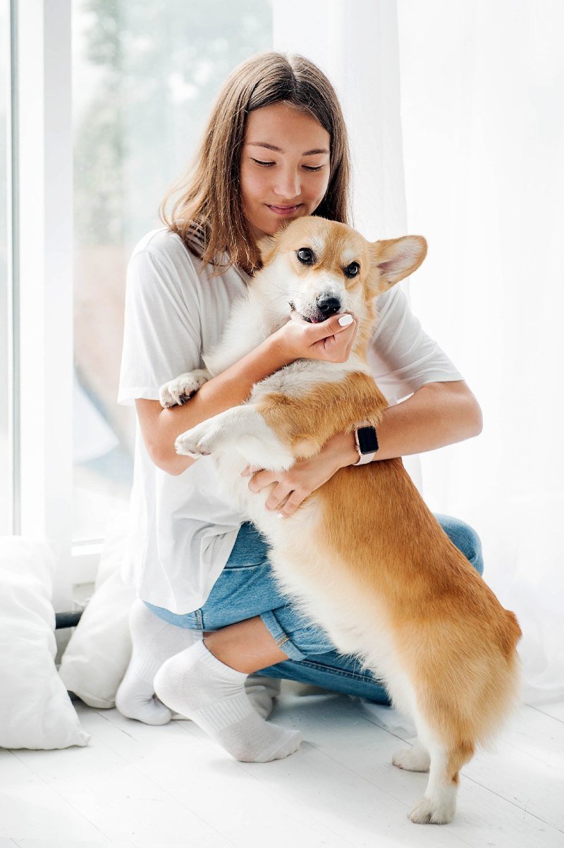 Корги пемброк с человеком