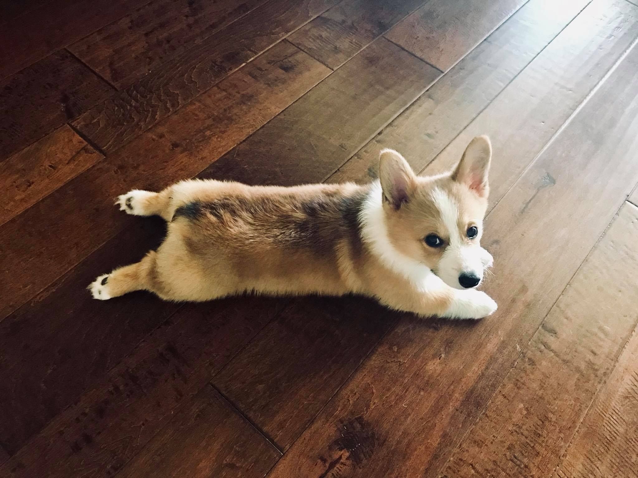 Корги щенок лежит