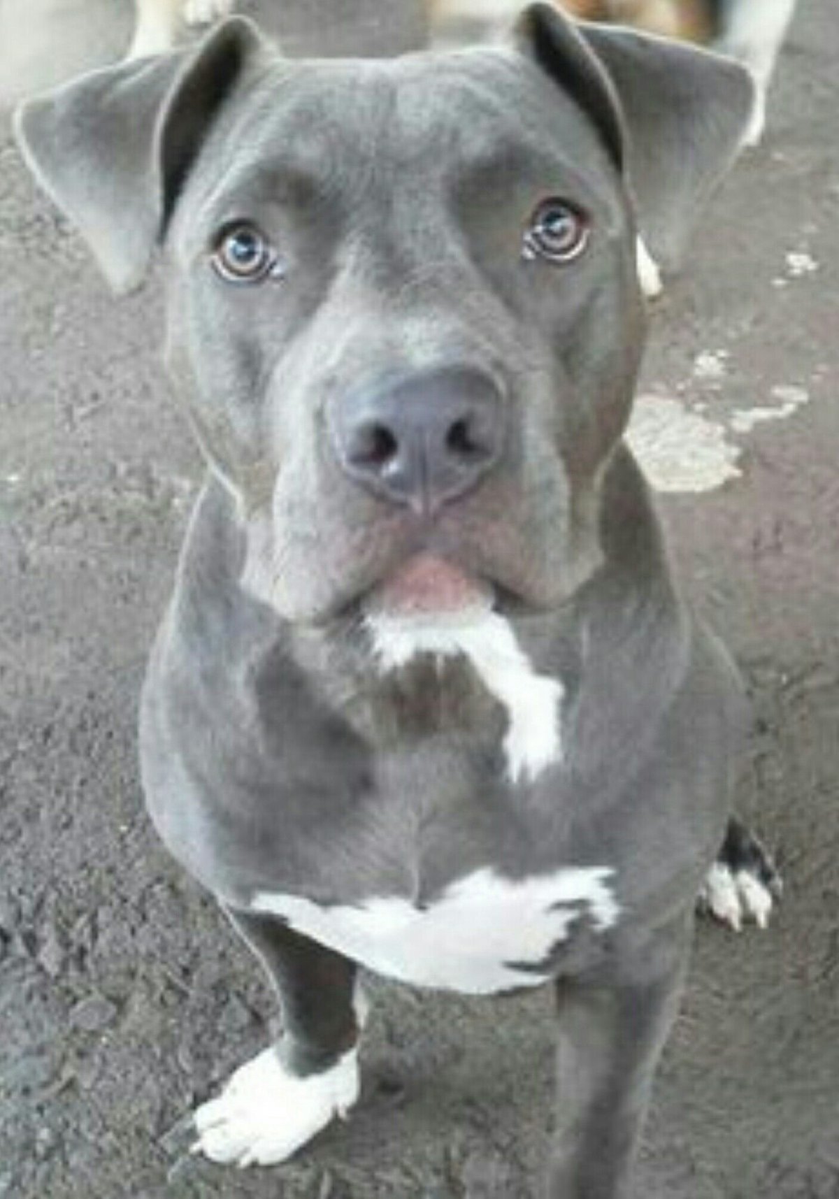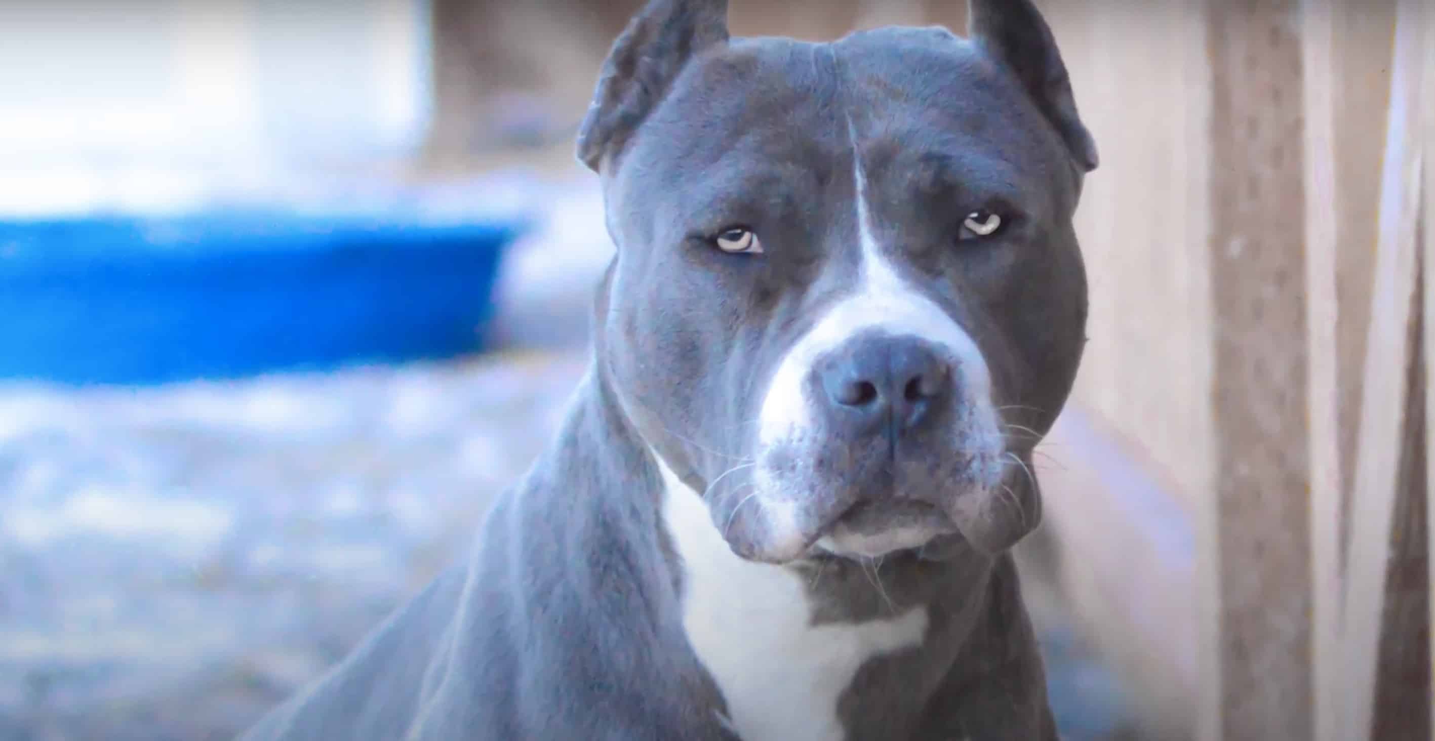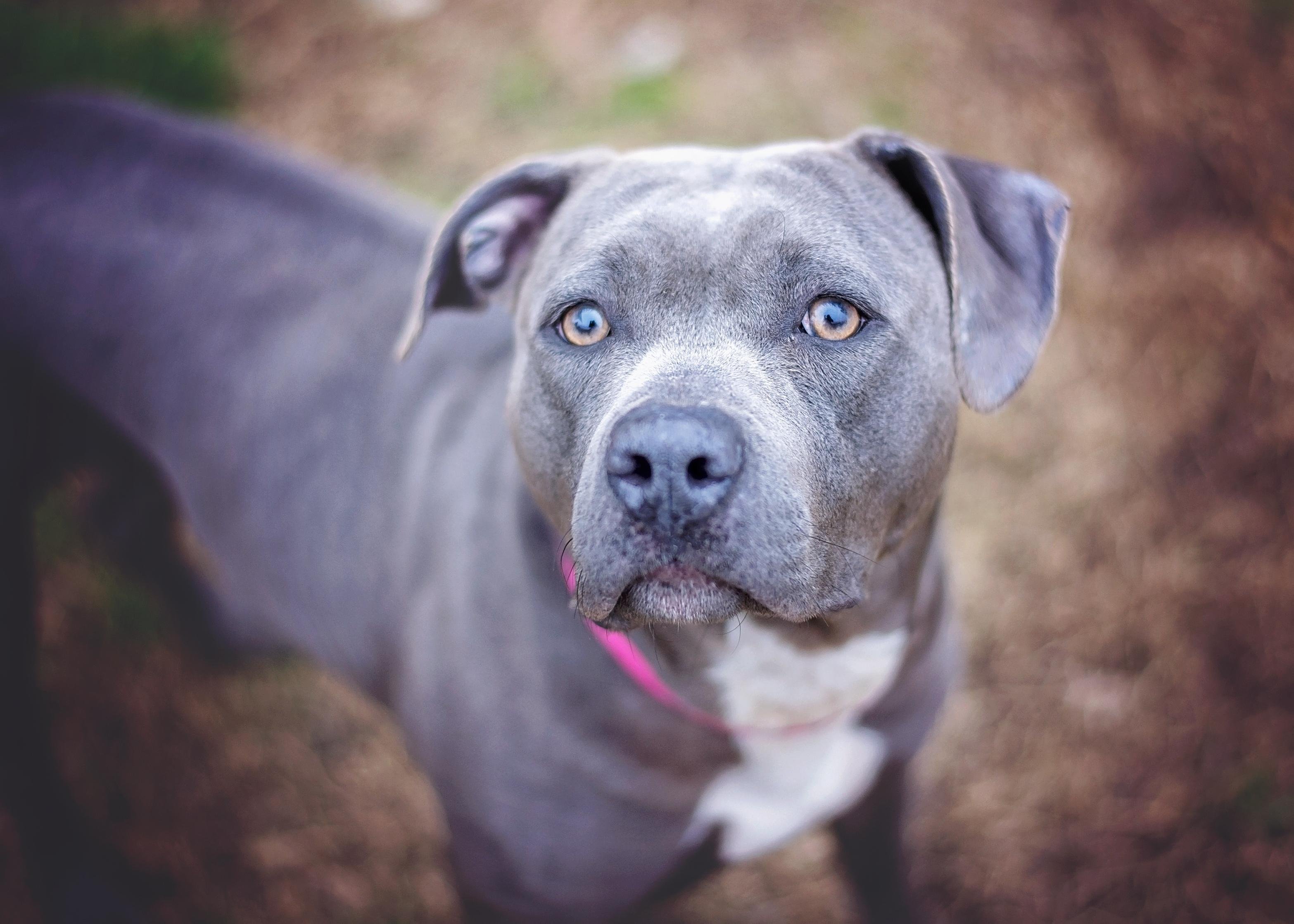 Питбуль серый с голубыми глазами