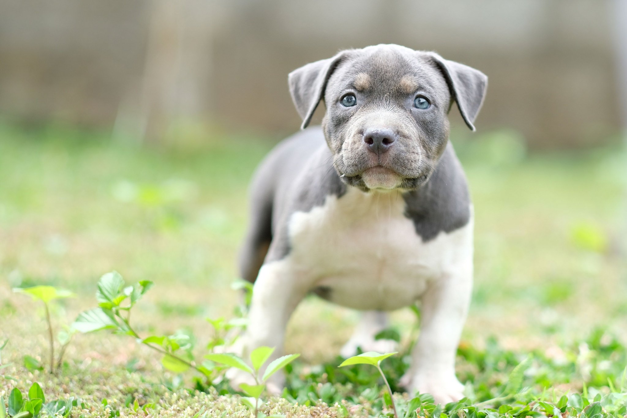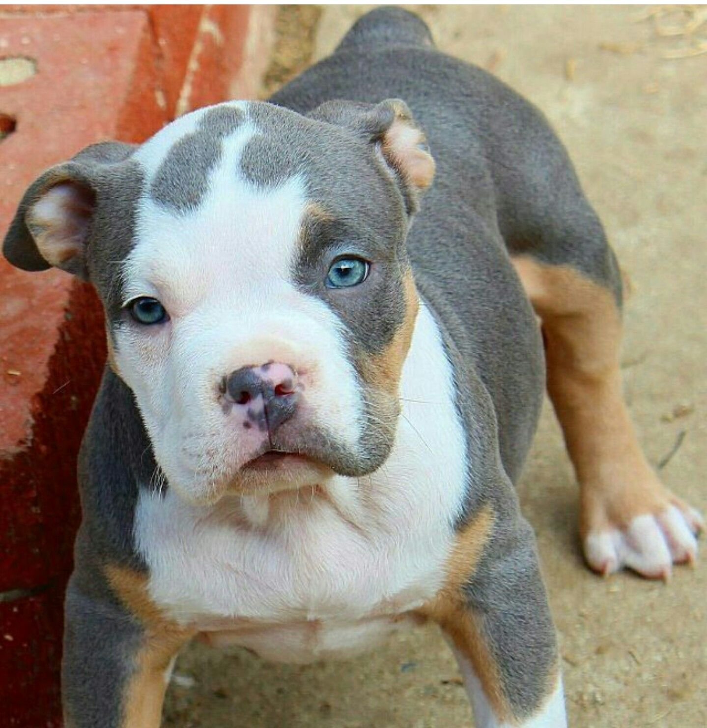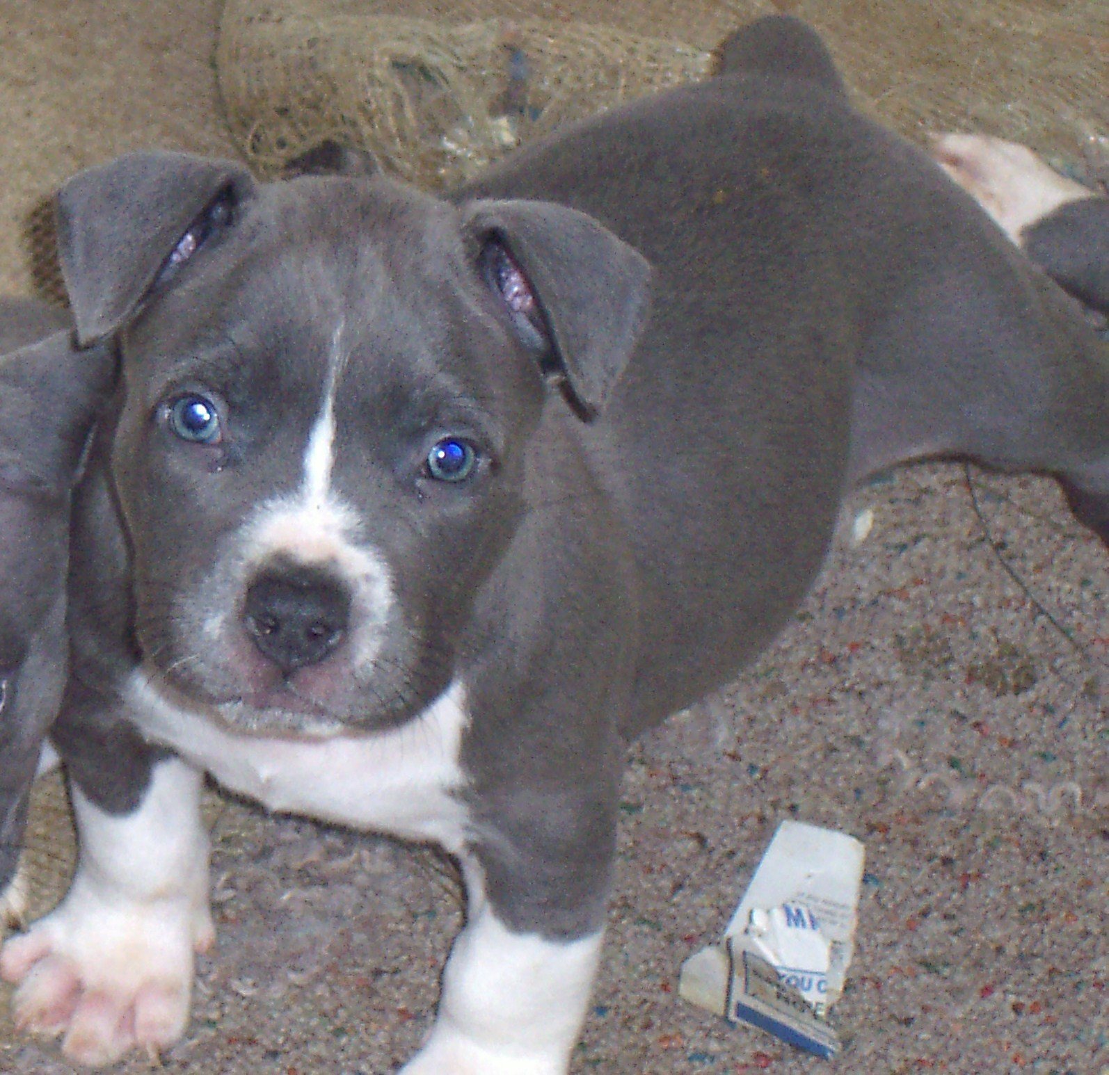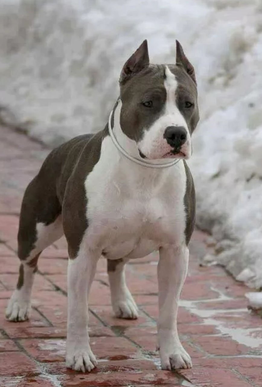 Питбуль серый с голубыми глазами